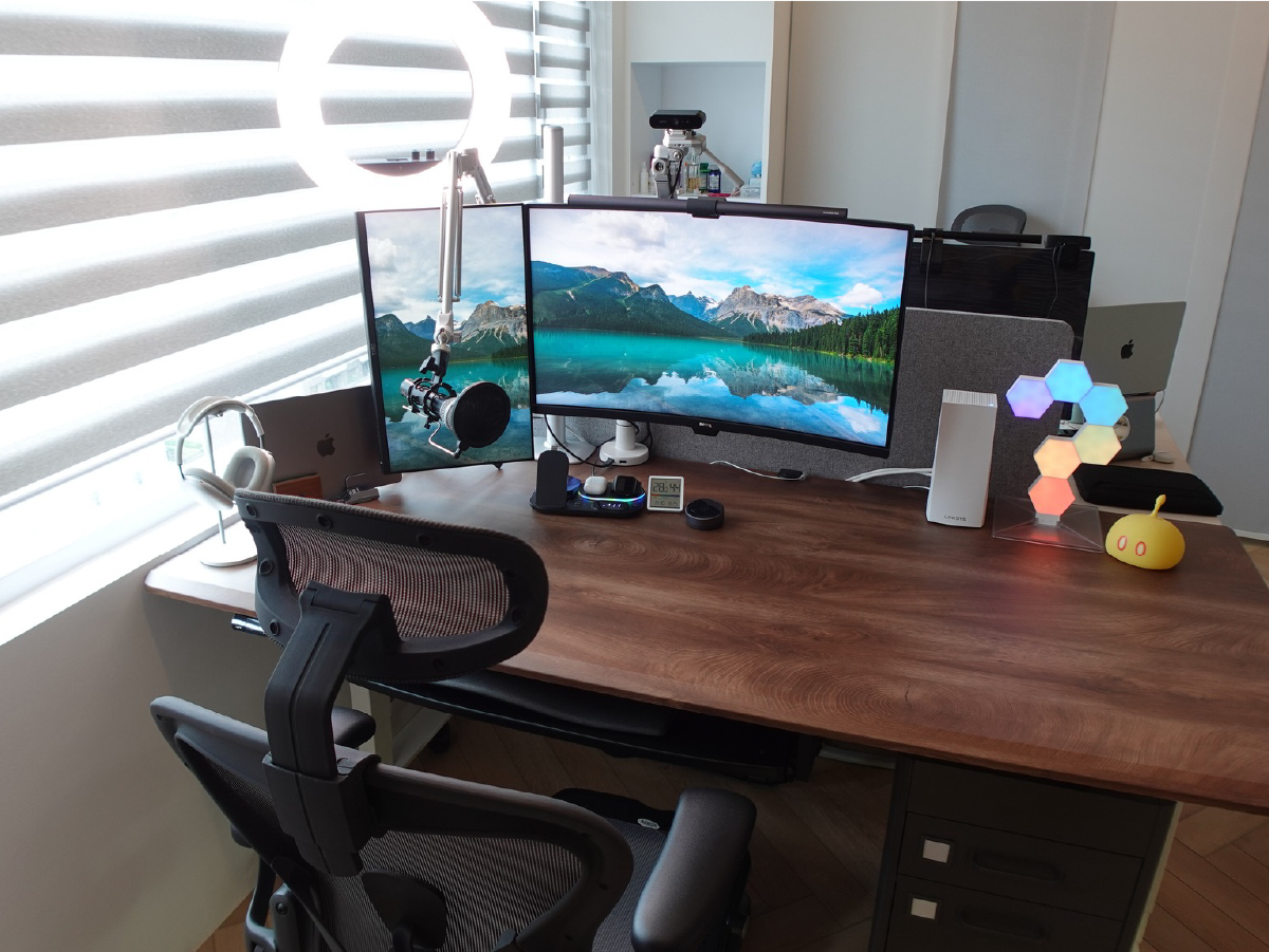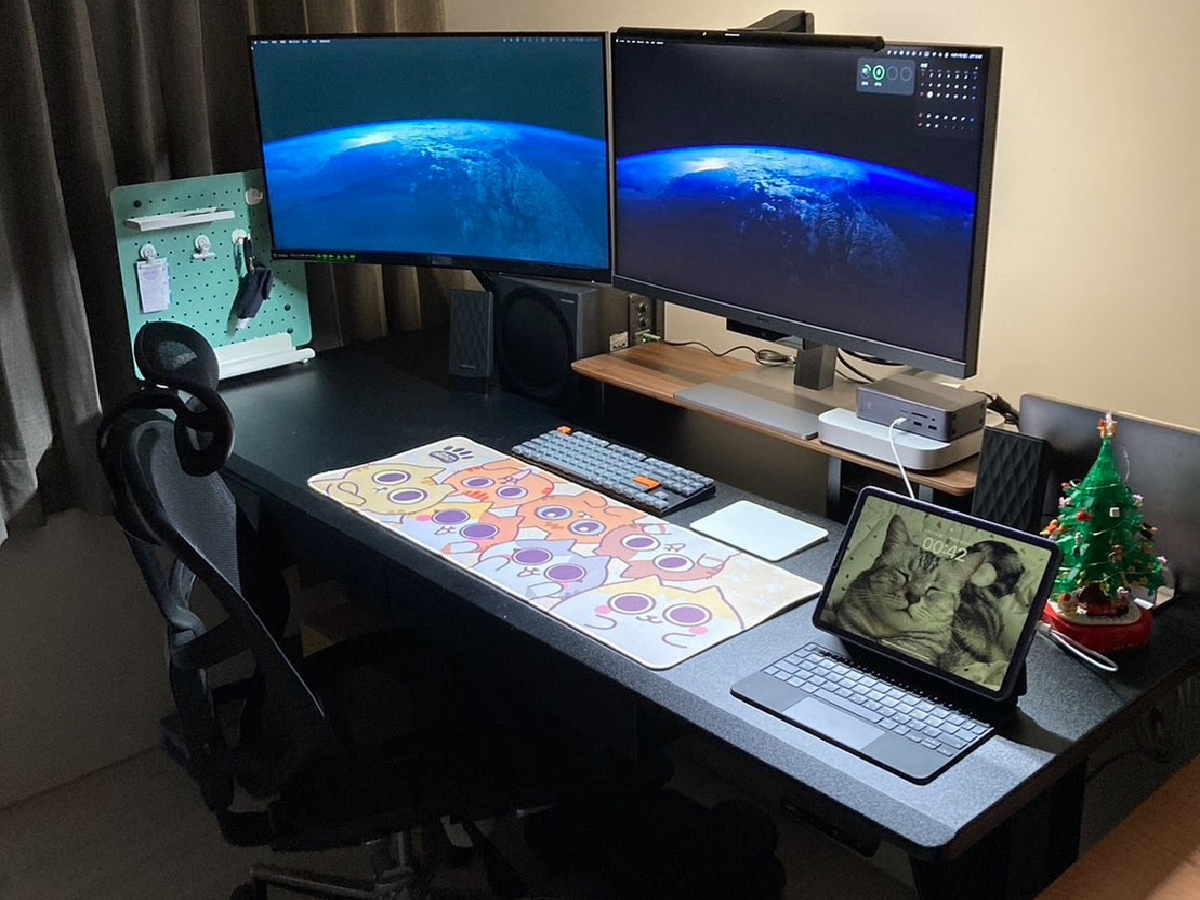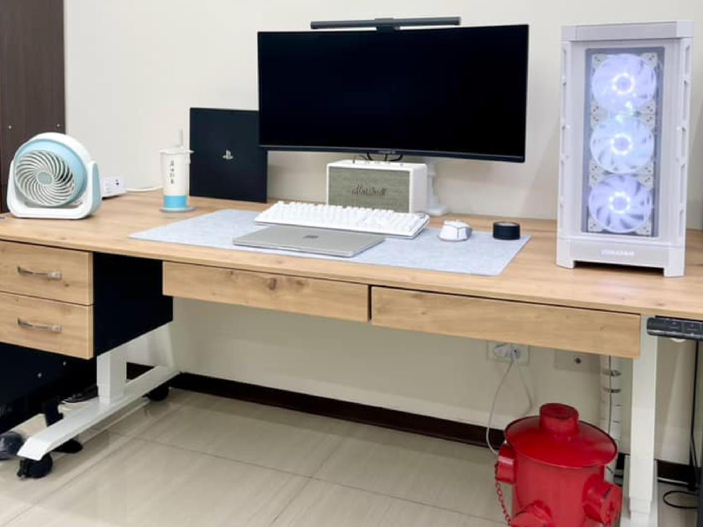 客製桌板搭配固定桌腳、RGB 炫彩燈效 Flying II 電競桌、可自動緩升降 ErgoNeck 護頸桌等,滿足各式使用情境。