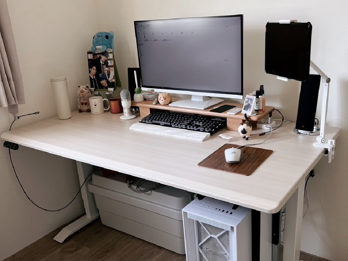 高承重四柱四馬達,升降安靜且穩定快速,可耐重 200kg,適用大尺寸或實木重型桌板。