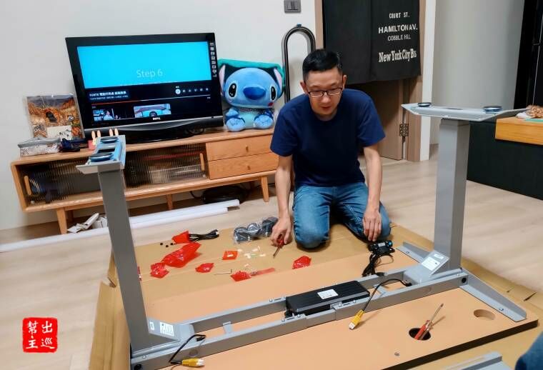 開工!除了內附的說明書之外,幫主也利用FUNTE 拍的Youtube安裝影片來安裝,特別提醒:如果要自行組裝,請務必要兩人以上協力,畢竟腳架、電機馬達都是很重的!幫主跟女王搞了一身汗,終於: