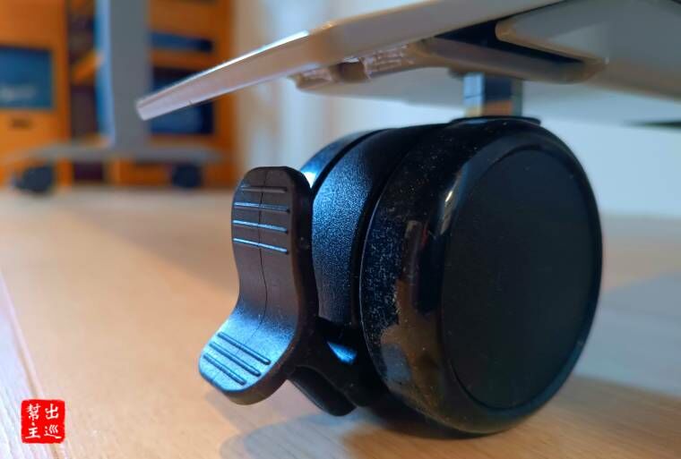 最後就是『PU腳輪』,前面說過是為了想要隨心情推桌子到不同地方辦公(不然用抬的非常重啊!),腳輪有煞車固定功能,以幫主的桌面尺寸(120 x 60公分)實測很穩定。