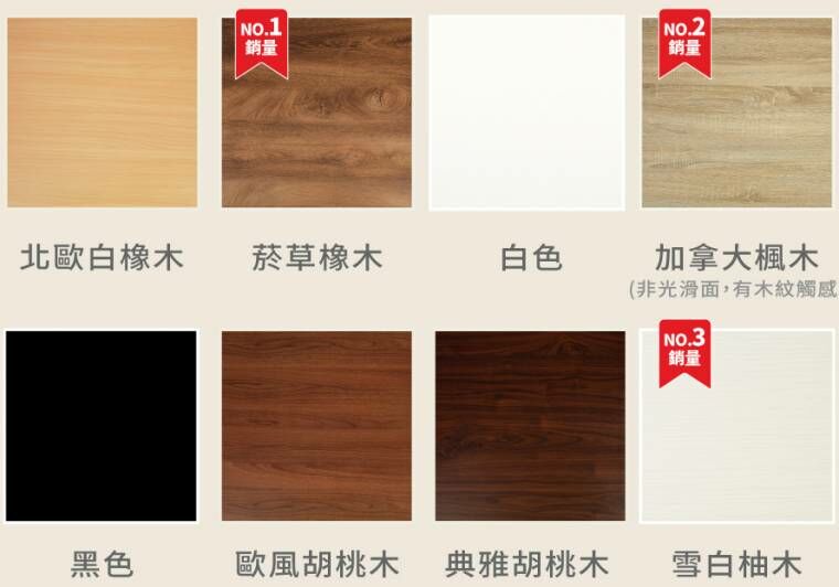 然後幫主選擇的黑色桌板搭配灰色桌腳視覺上很有質感,不過黑色桌面灰塵會比較明顯,如果你家落塵大就建議選擇淺色系桌面,FUNTE 的桌面選擇很多: