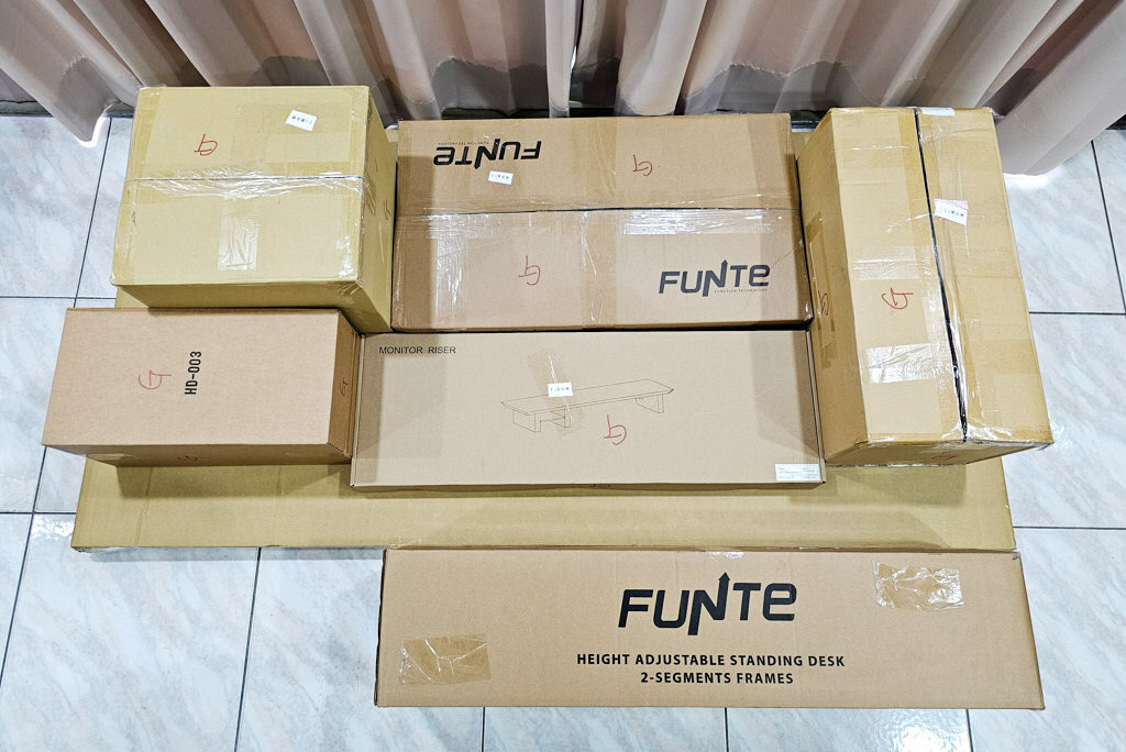 我們選擇長邊160x短邊80cm (前弧度上斜+後凹)為訂製尺寸,需要等待約30個工作天製作,期待已久送到家的時刻終於來臨啦!全部有好幾大箱喔!