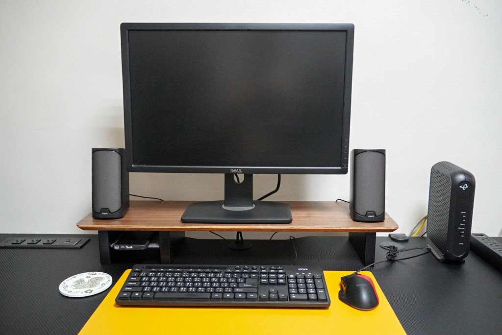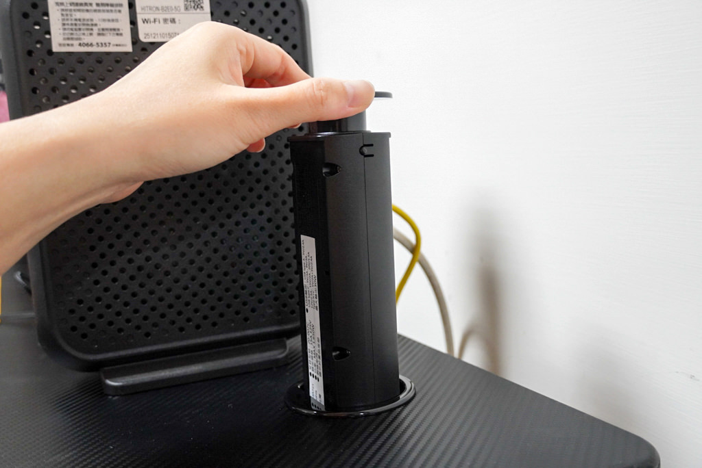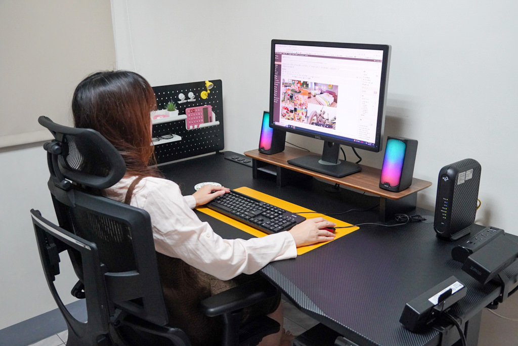 接下來我們自己把數據機、螢幕等周邊用品放上去,馬上可以開始使用了超開心!超美型質感升降桌讓每天工作都有好心情