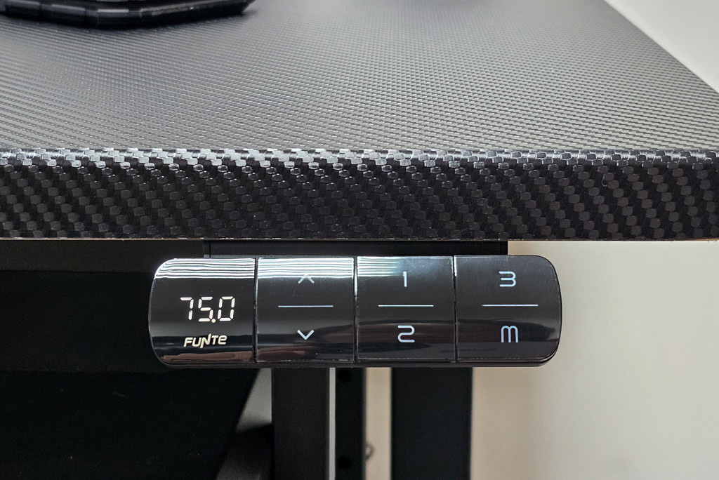 有3組記憶模式,一般電腦桌的高度是75cm左右,可以依照使用者的身高,調整到自己最舒服的高度,按下m,再按1,就會記錄在第一組