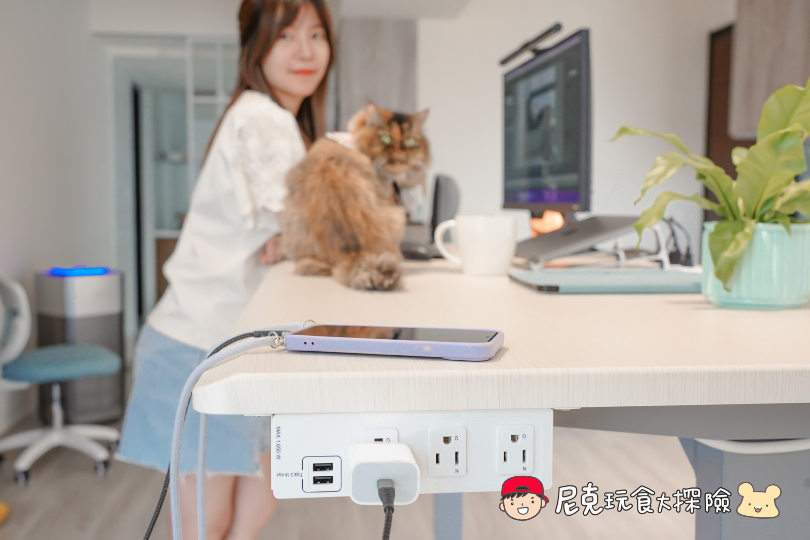 安裝師傅很細心,會幫忙把電線用束帶都收好,固定在桌子底下,收得美美的。尼克有部分電線請師傅先不用幫我們收,所以旁邊才會呈現電線長長的露在外面的狀態。最後師傅也會幫忙測試功能沒問題,有師傅到府安裝到好,是不是 CP 值很高!