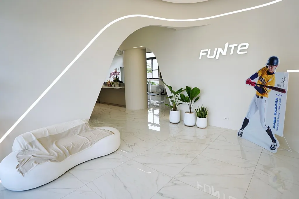走進門市,你會被潔白的色調所吸引,感覺格外舒適。FUNTE的代言人是中信兄弟的岳政華,這也為門市增添了些許特別的魅力。