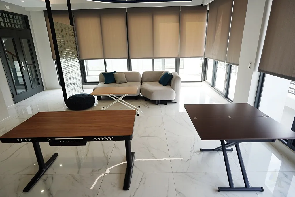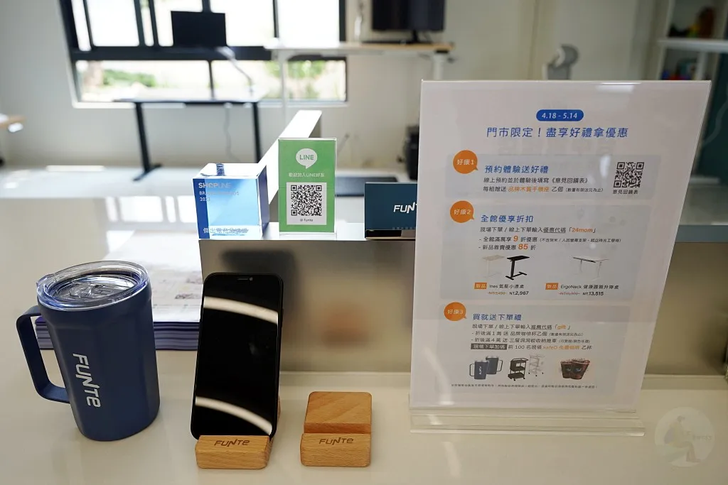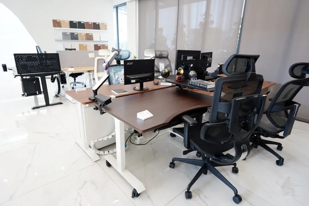 FUNTE 門市有一樓和二樓展示間,一樓有許多實際的升降桌可以試用體驗,而且還有各種周邊商品可以參考喔!這樣你就可以親身感受升降桌的便利和實用性,並且挑選最適合你的配件,打造出完美的工作環境。
