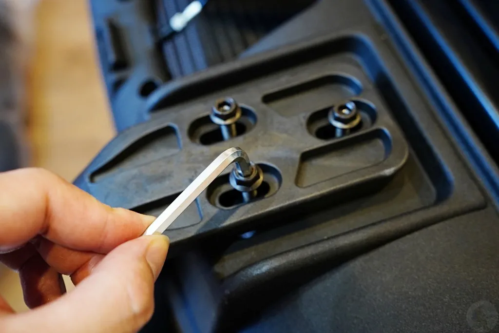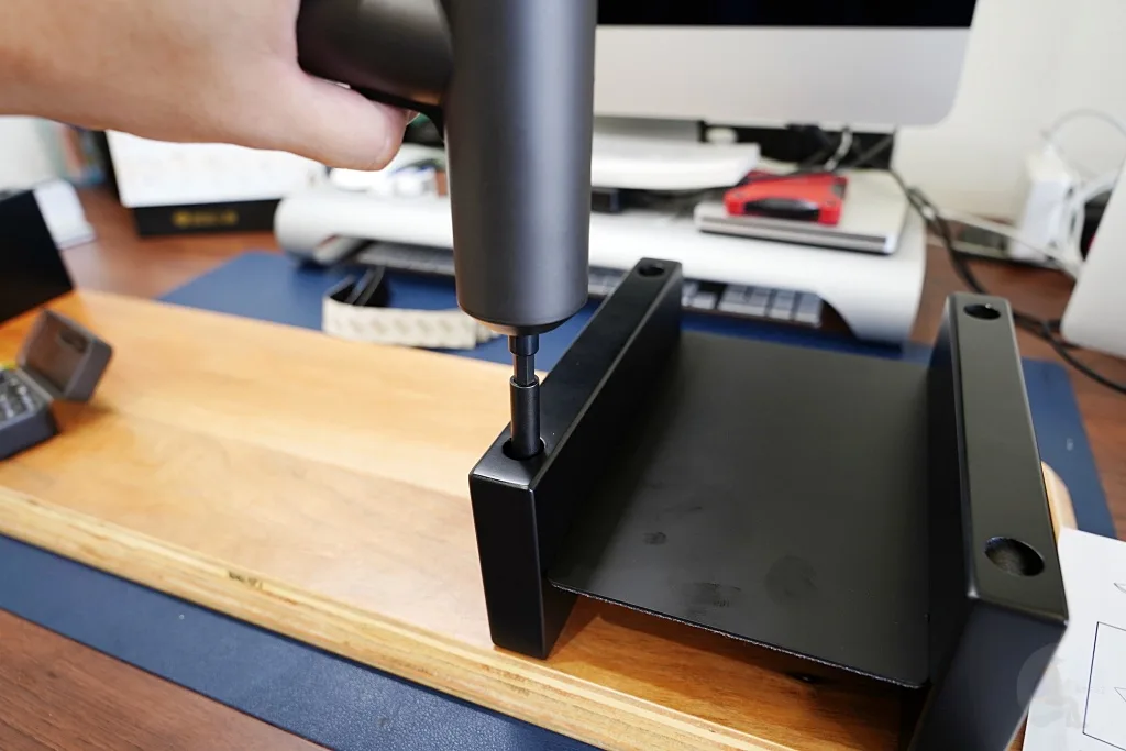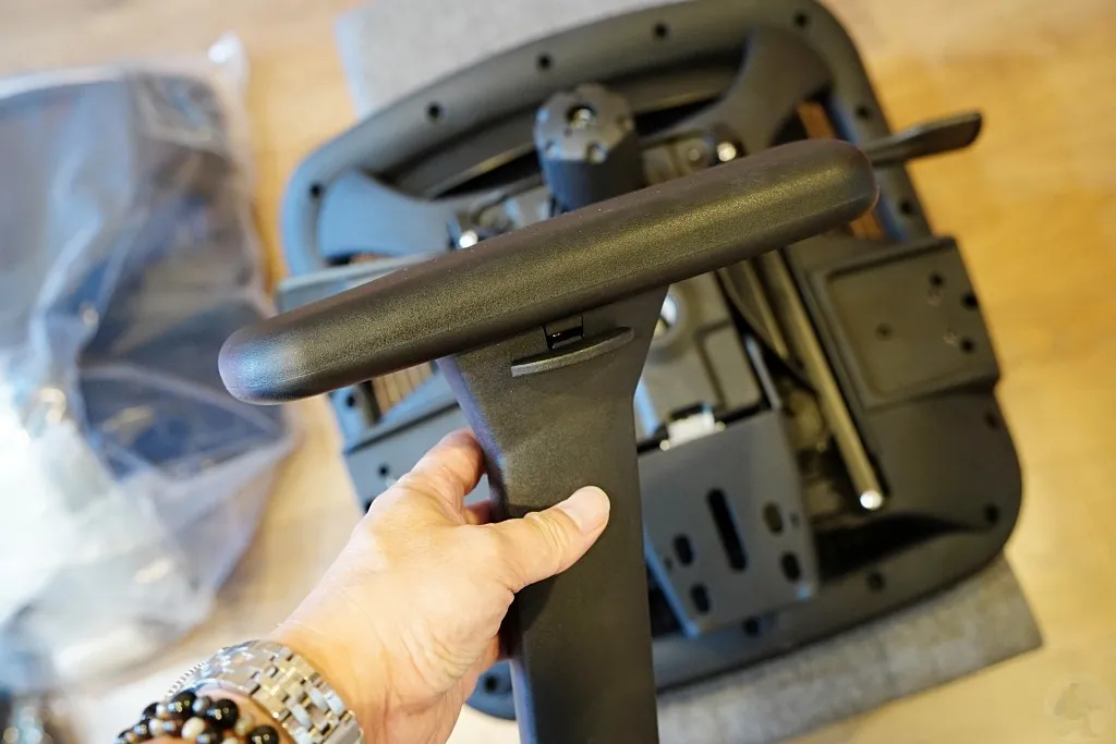 左右兩邊的扶手都需要鎖上三根螺絲,商品本身有附上一支六角板手,你也可以使用自己的電動工具來鎖會比較輕鬆喔!!