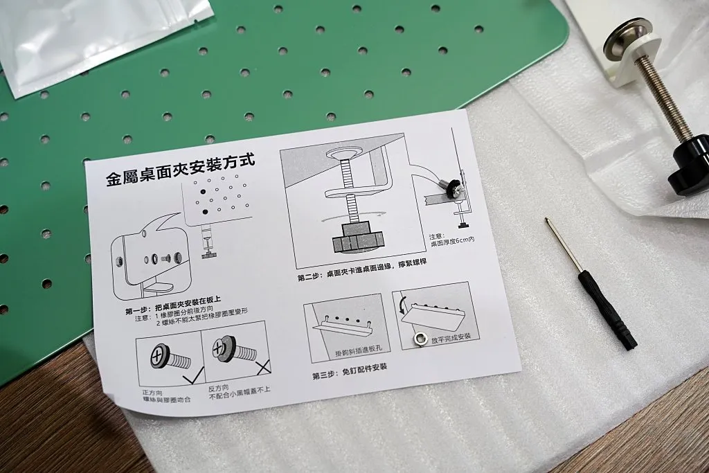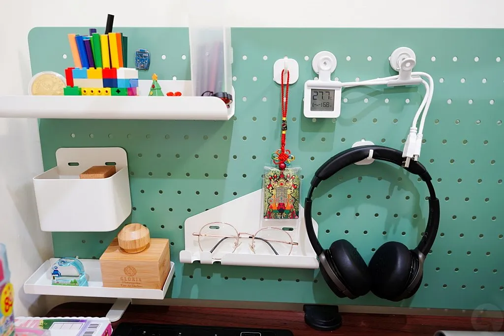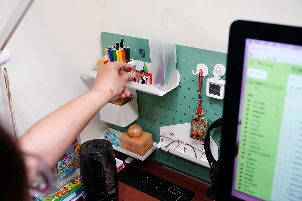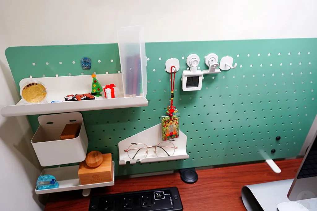 因為旅咖的 FUNTE人體電動工學升降桌的桌面擺了很多小東西,其實感覺很亂,又剛好看到這組夾式洞洞板收納組,真的非常適合我,所以也順便帶走!!夾式洞洞板收納組一共有大小兩種,配件/顏色也不一樣,可以看自己需求來選擇!