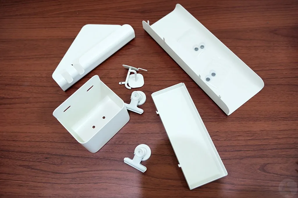 旅咖是選擇全能收納組,所以裡面包含有掛式層架、掛式淺托盤、磁吸掛鉤層架、磁吸置物盒、磁吸夾子、掛鉤。