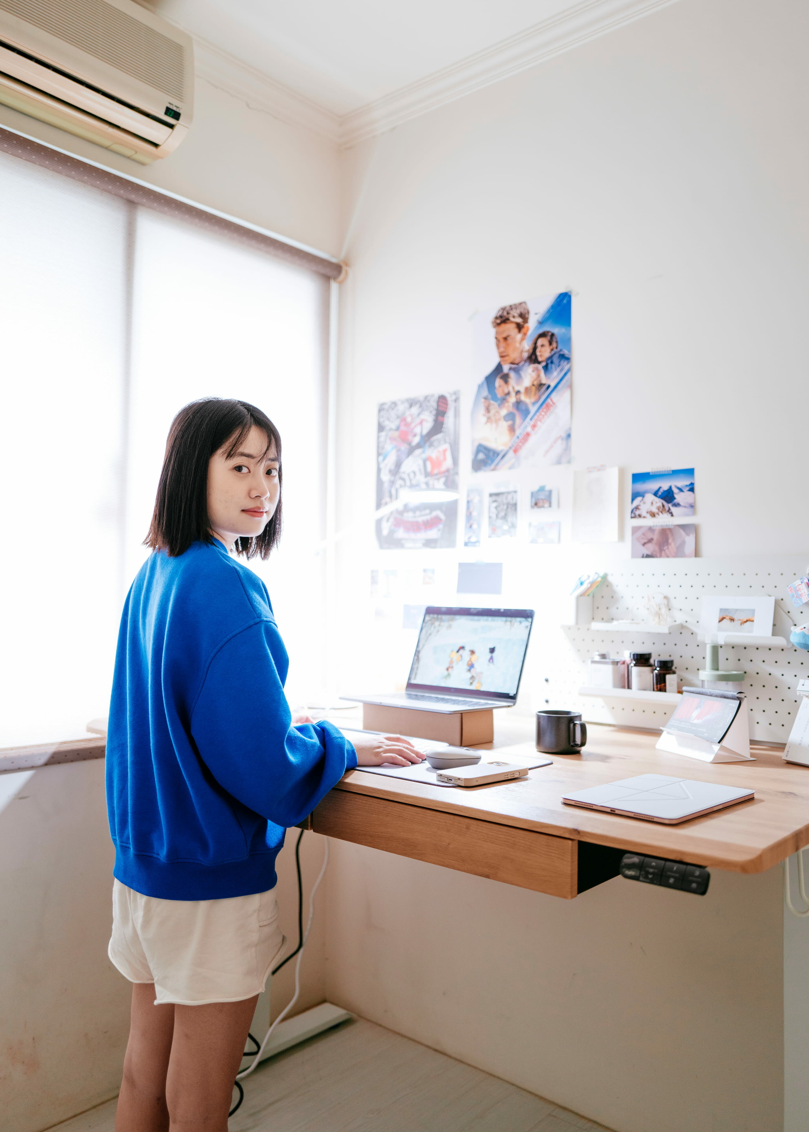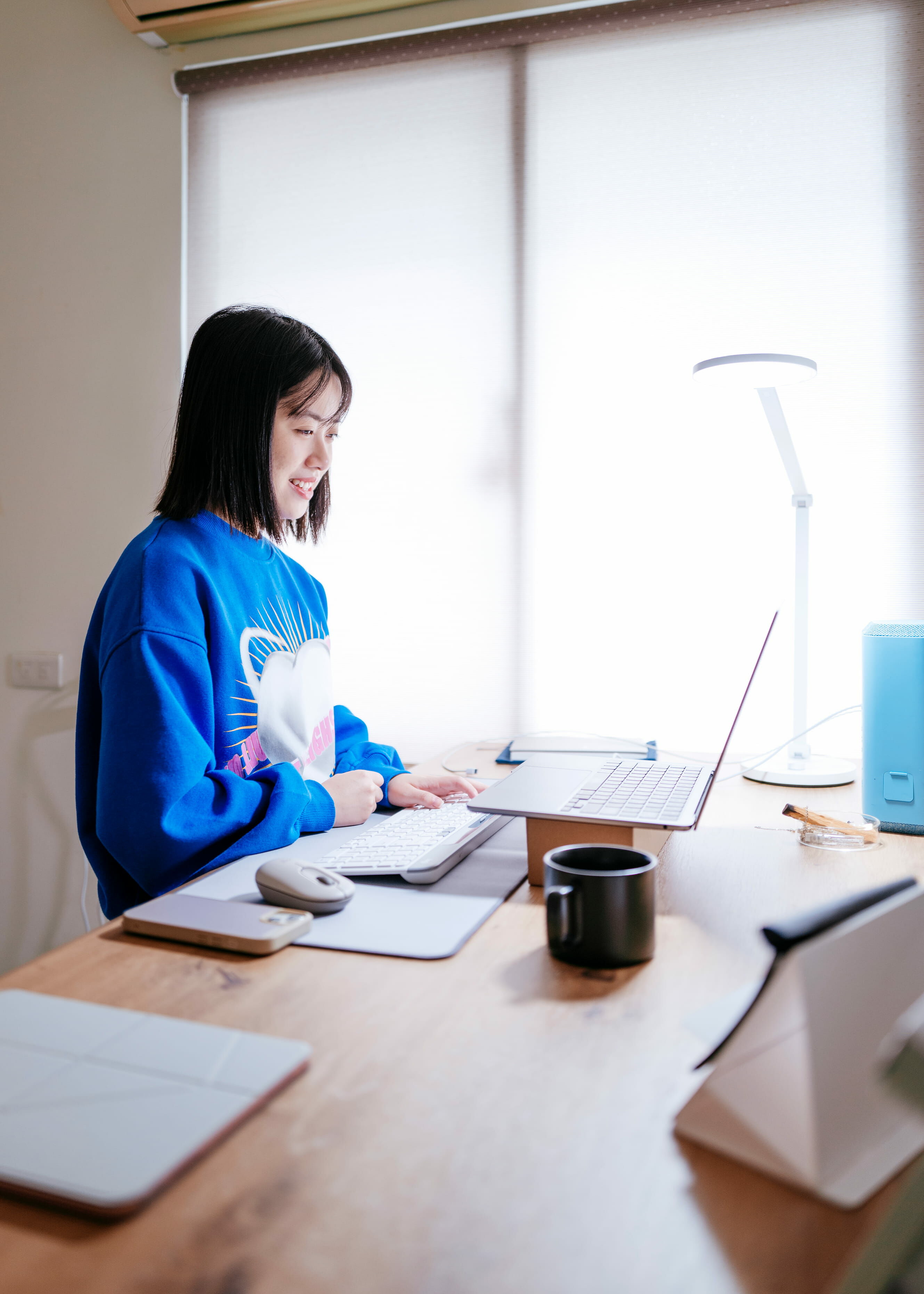 換了升降桌後,不論我在看書、上網、工作,都可以調整到適合的高度,坐站交替讓血液循環,也提升工作效率!