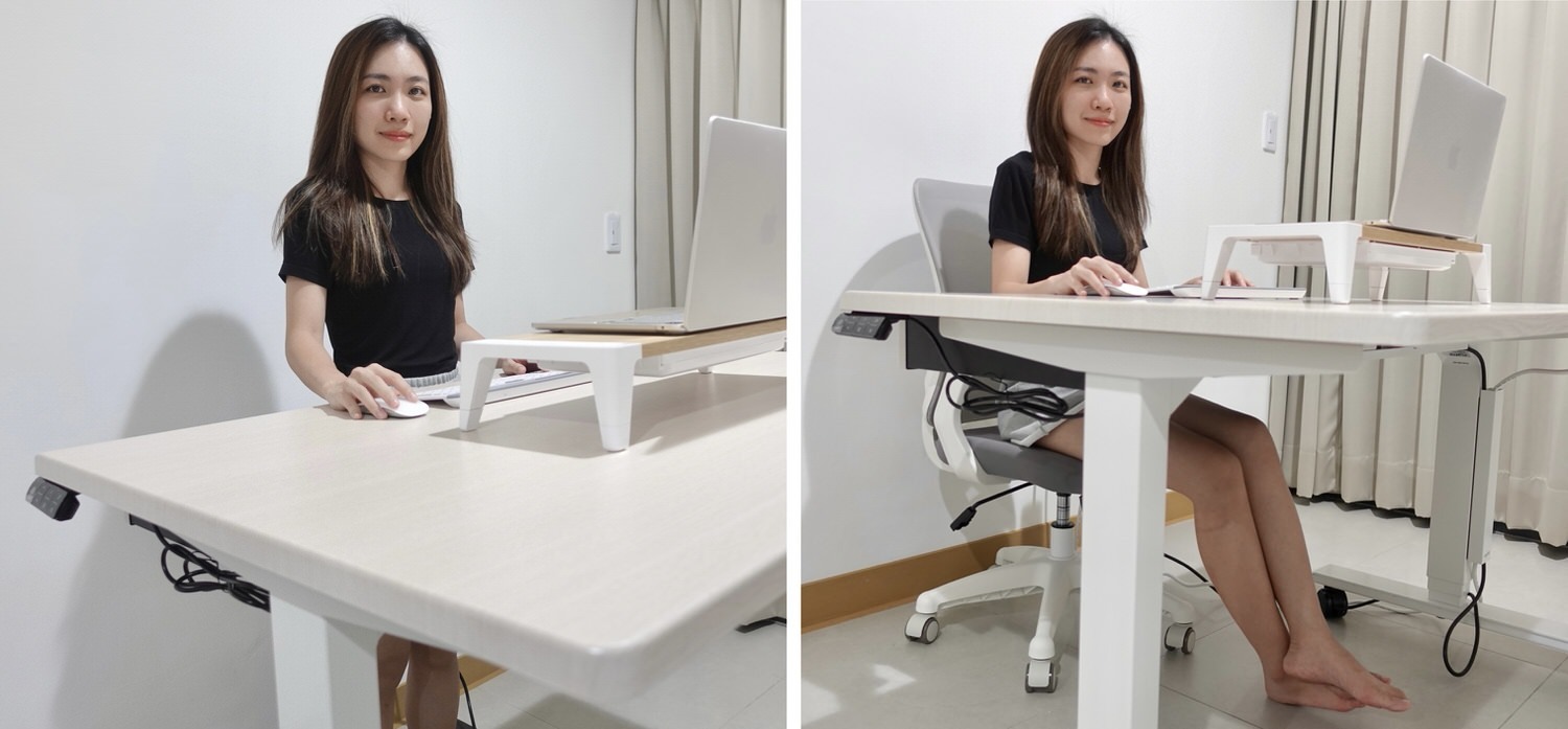 電動升降桌的最大優點就是可以讓我們用電腦或讀書的姿勢有更多彈性,不僅能夠客製化調整適合自己的高度,也可以隨著站姿或坐姿的變換自由調整,不論什麼姿勢用電腦或讀書,都有助於讓身體維持在最舒適不壓迫的姿勢。