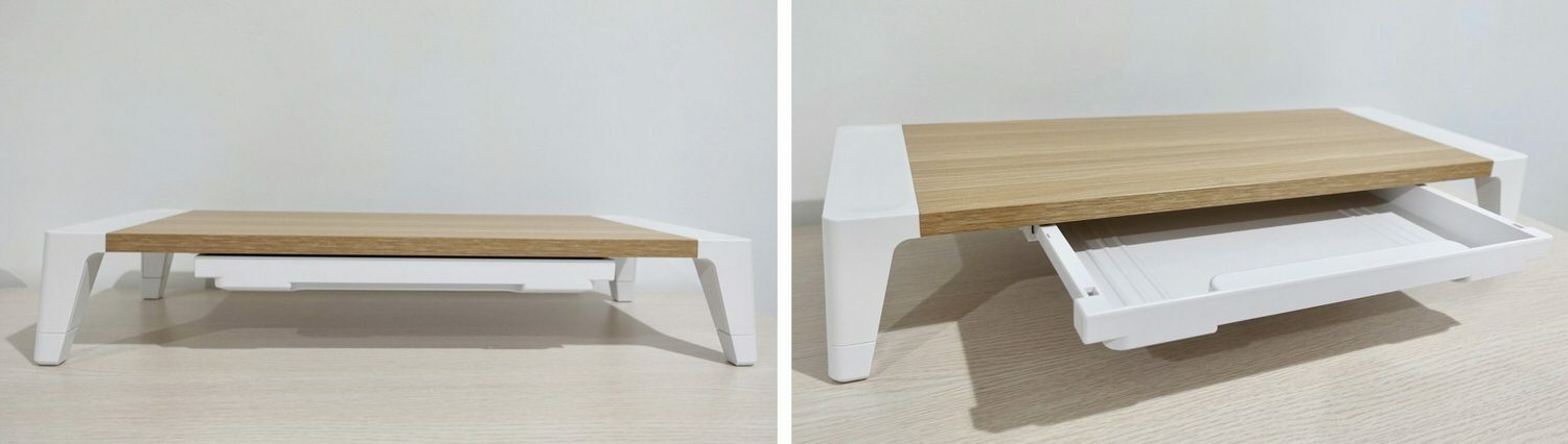 如果平常大多使用升降桌用電腦的話,「桌上型螢幕架」可以讓長期使用電腦的肩頸疲勞度大大改善,可架高電腦螢幕的桌架,告別烏龜頸可以更舒適的看電腦螢幕,高度則有兩段式的調整設計,能自由變化合適的高度。