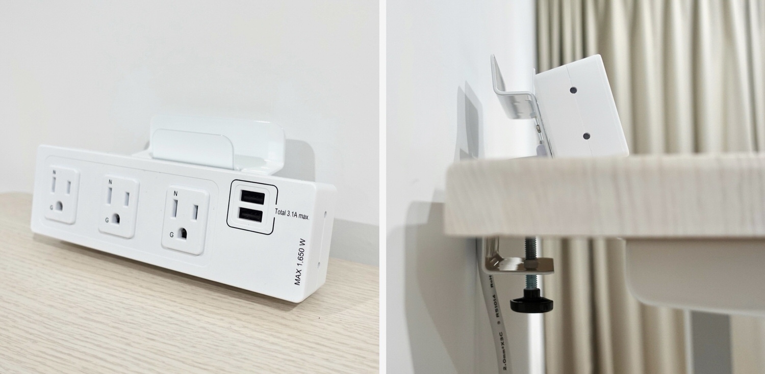 平時在書桌上大部分時間都是在用電腦或電子產品,桌上型充電功能就顯得非常實用。FUNTE 充電插座的款式選擇蠻多的,有可活動拆卸的夾式插座、嵌入式插座、孔式插座等,根據我自己使用習慣的需求最後選擇的是夾式「桌上型延長線 3插2USB」,如果隨時想拆卸或是移動插座位置都能自由調整。