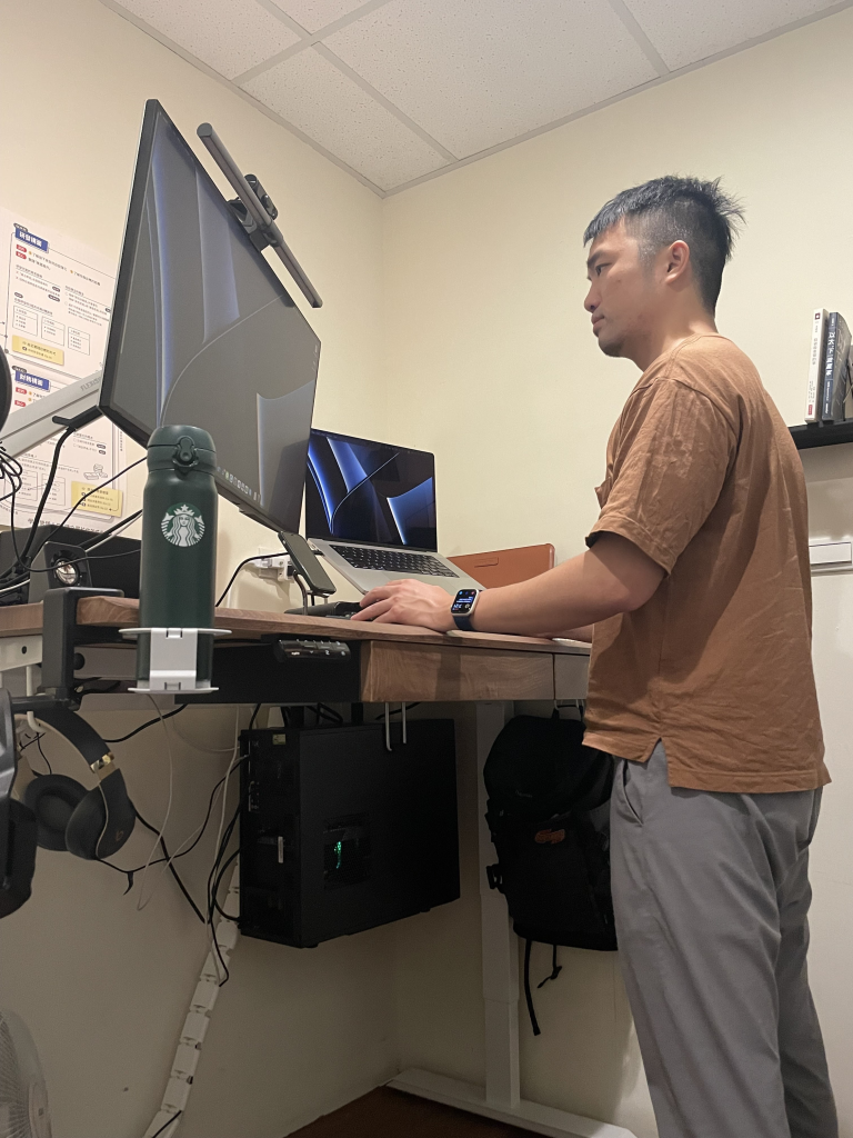 2022 年 4 月因為疫情爆發後,我開始長期居家辦公的生活,居家辦公與進辦公室最大的差別,除了最明顯的每日走路里程縮短之外,就是「久坐時間拉長」、「坐站交替次數下降」。從開會不用跑會議室、從喝水、上廁所變成 5 步以內的距離,再到午餐不用外出覓食、下午不用陪同事去買咖啡……等。