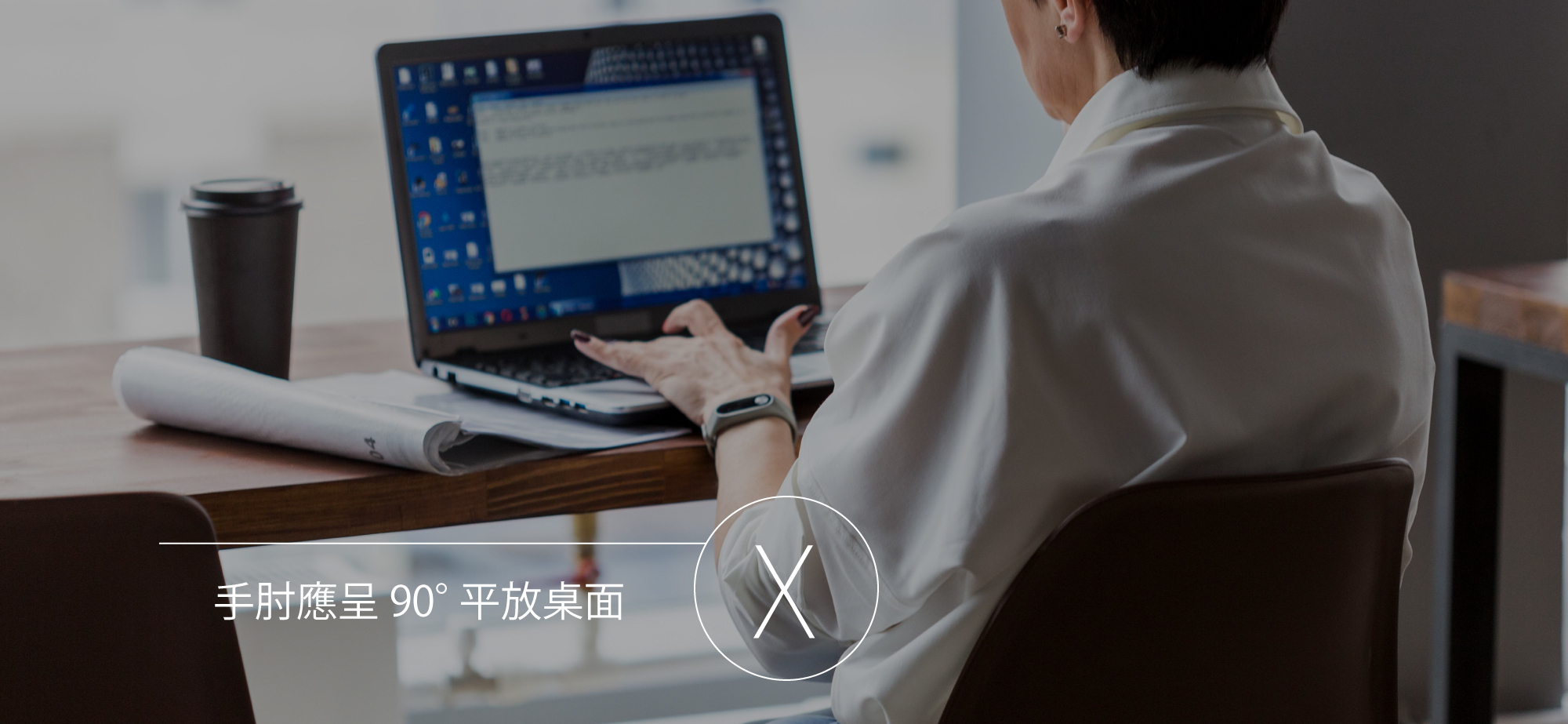 最簡單的測量方式,是坐著將手肘彎曲 90 度,能讓手臂呈現 90 度平放的桌面高度,就是最適合你的高度。想要舒適地工作,是要讓桌子符合你的身形、符合自然坐姿,而不是駝背或聳肩、讓身體去適應桌子!