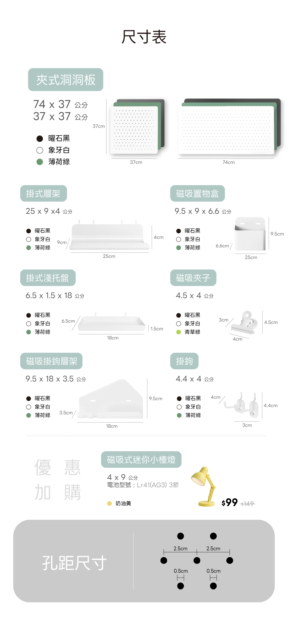 ✅ 洞洞板尺寸:大 74x37cm|小 37x37cm