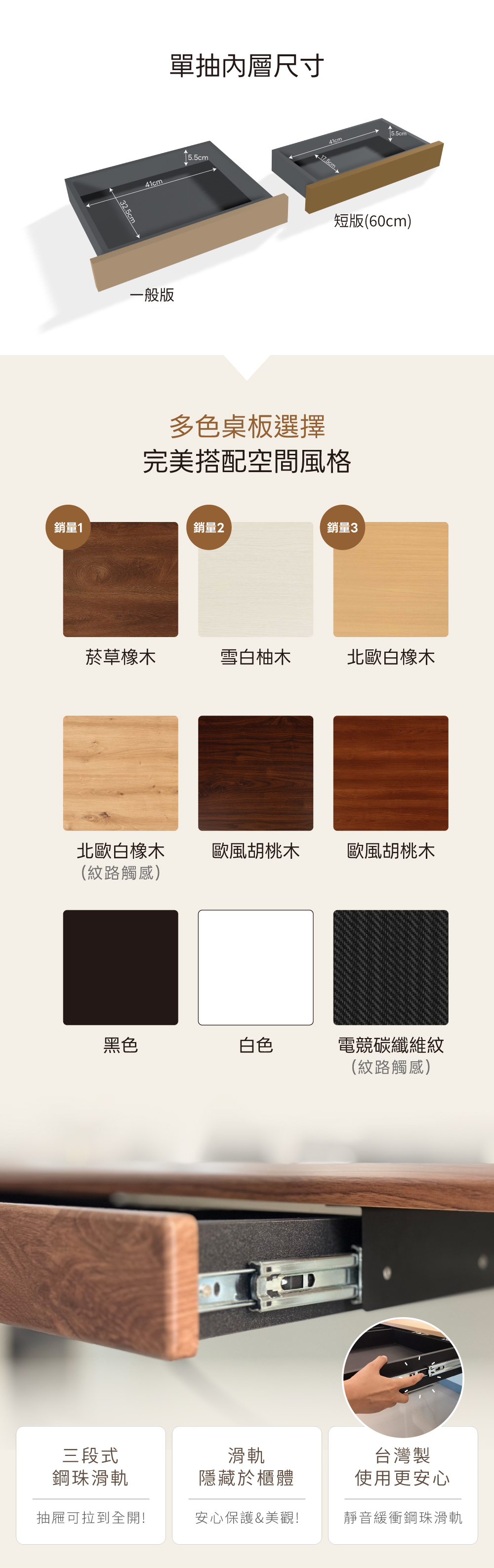 ✅ 台灣製造三段式滑軌,可拉至全開