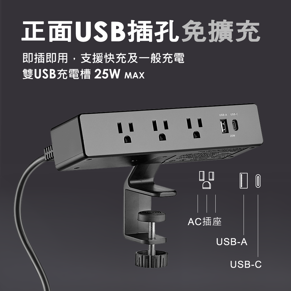 ✅ 5 個 AC 插座 / USB-A / USB-C,支援快充