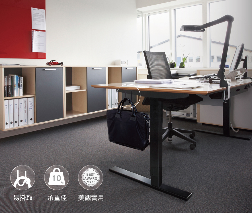 Prime 升降桌左右前後已開好 4 個孔位,收到後可自由決定安裝位置,鎖上即可使用。