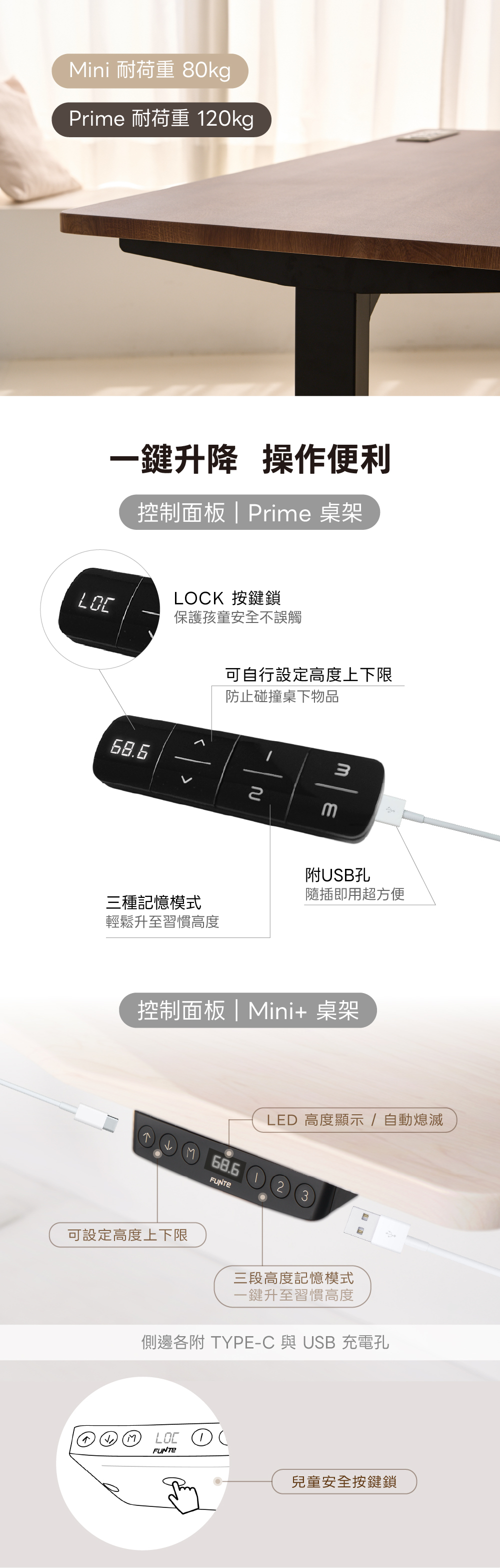 ✅ 適用強效雙馬達 Prime / Mini+ 升降桌架