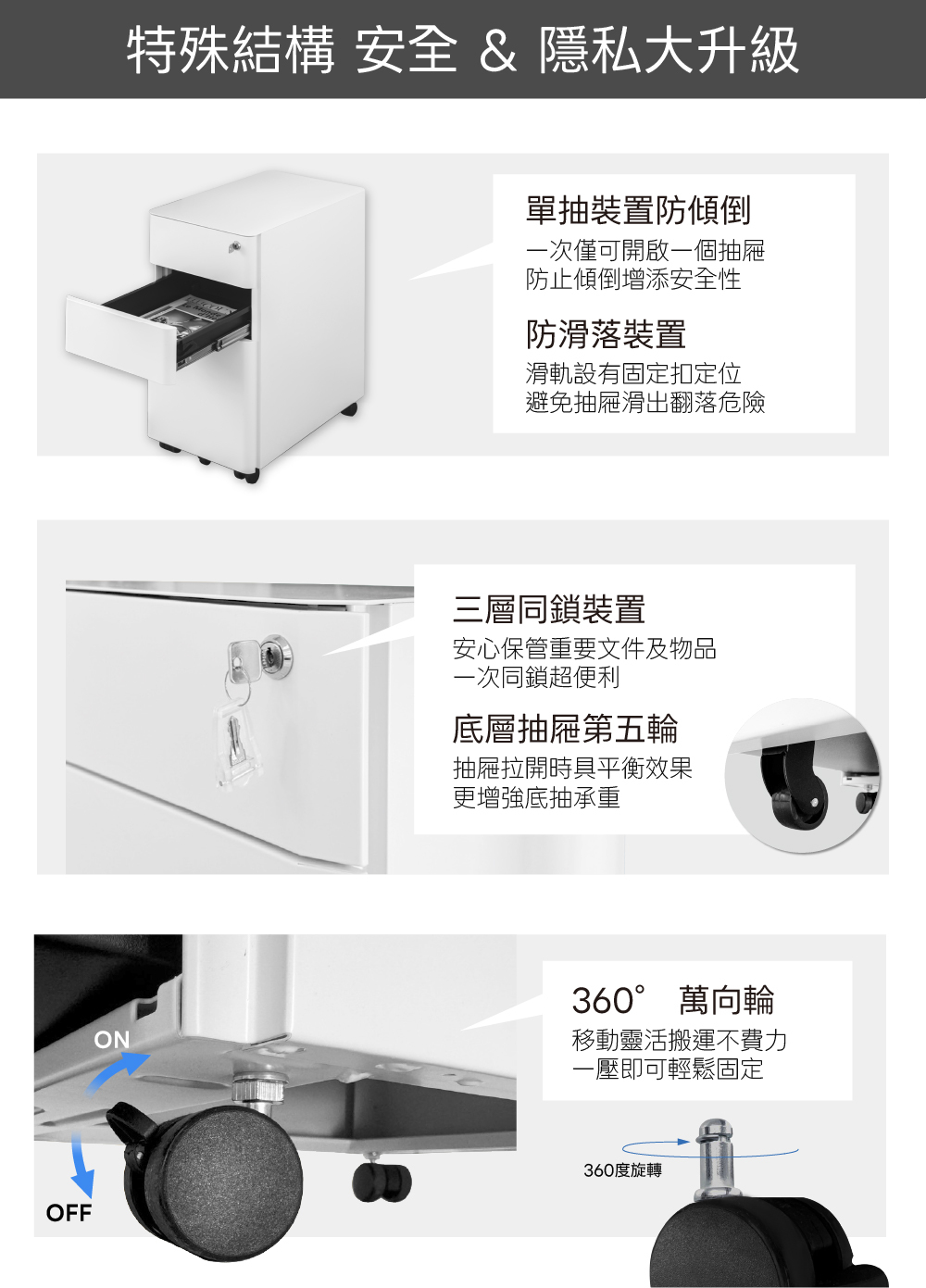 ✅ 安全防傾倒設計,可避免櫃體傾倒、抽屜滑落