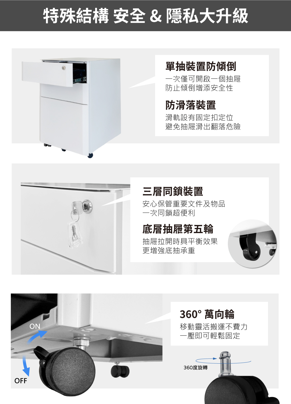 ✅ 安全防傾倒設計,可避免櫃體傾倒、抽屜滑落