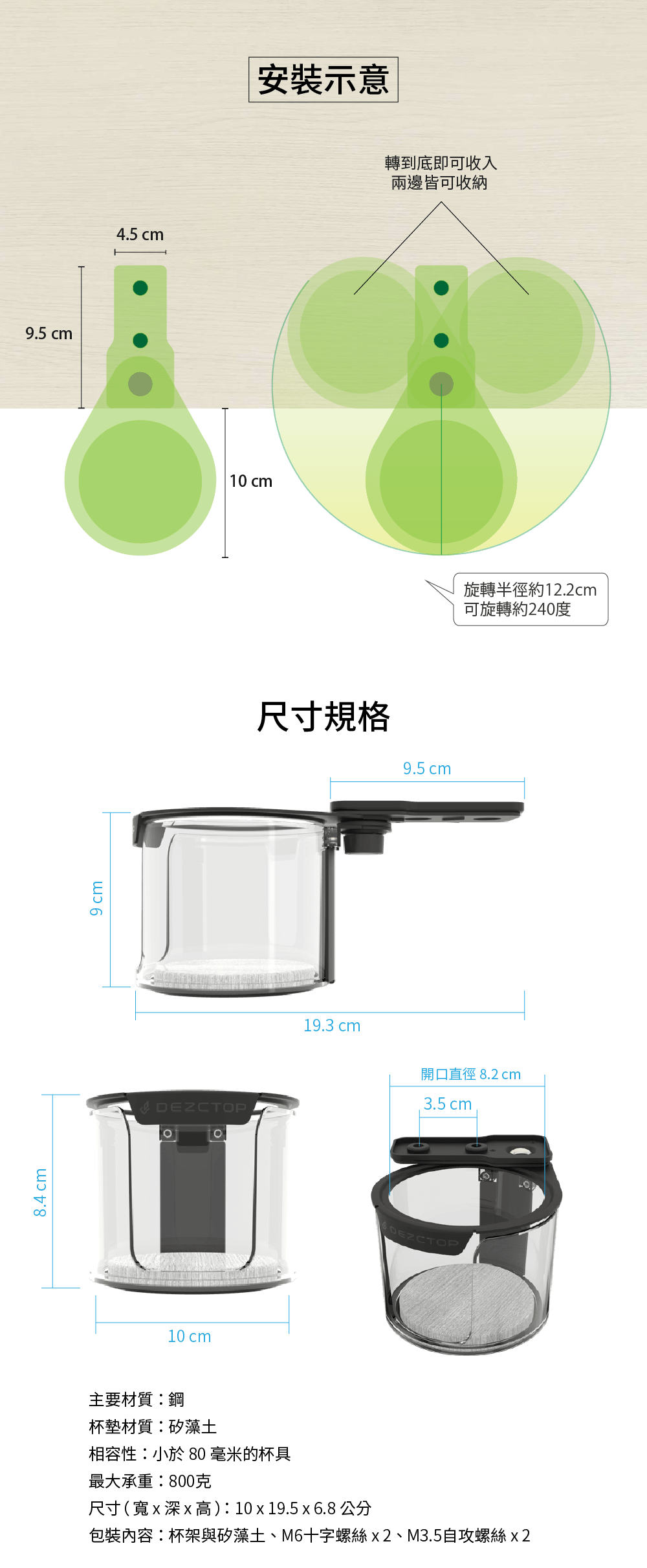 可容納直徑 80mm 以下杯瓶、90mm 以下馬克杯