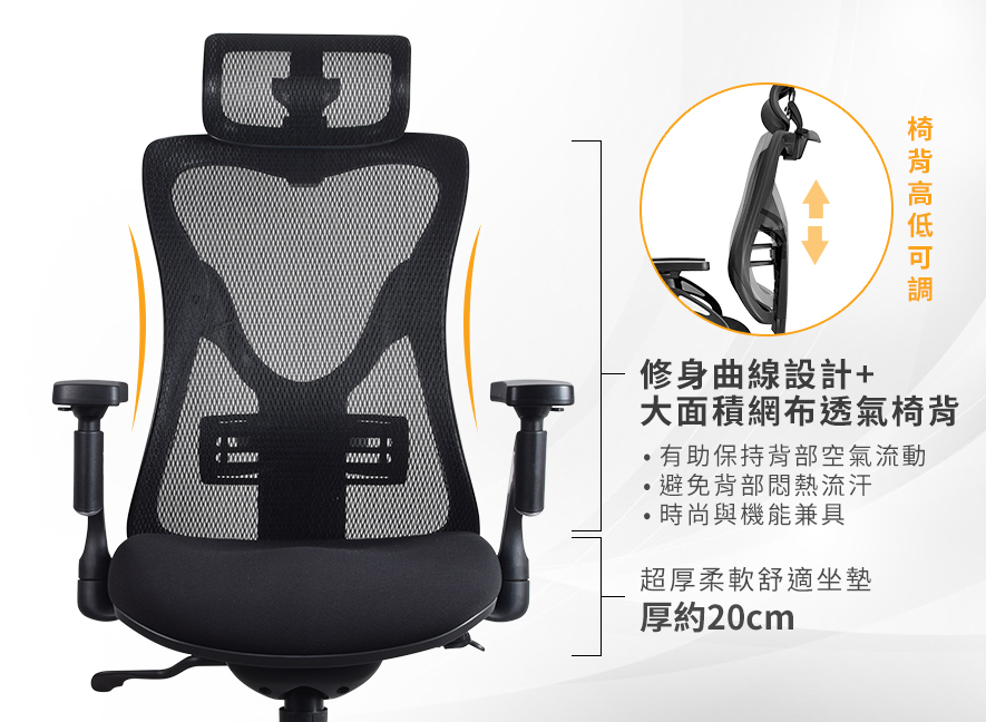 ✅ 高彈力透氣網布椅背,夏日久坐不悶熱