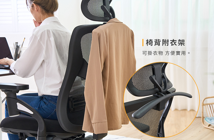 ✅ 椅背衣架可吊掛衣物,兼具收納功能