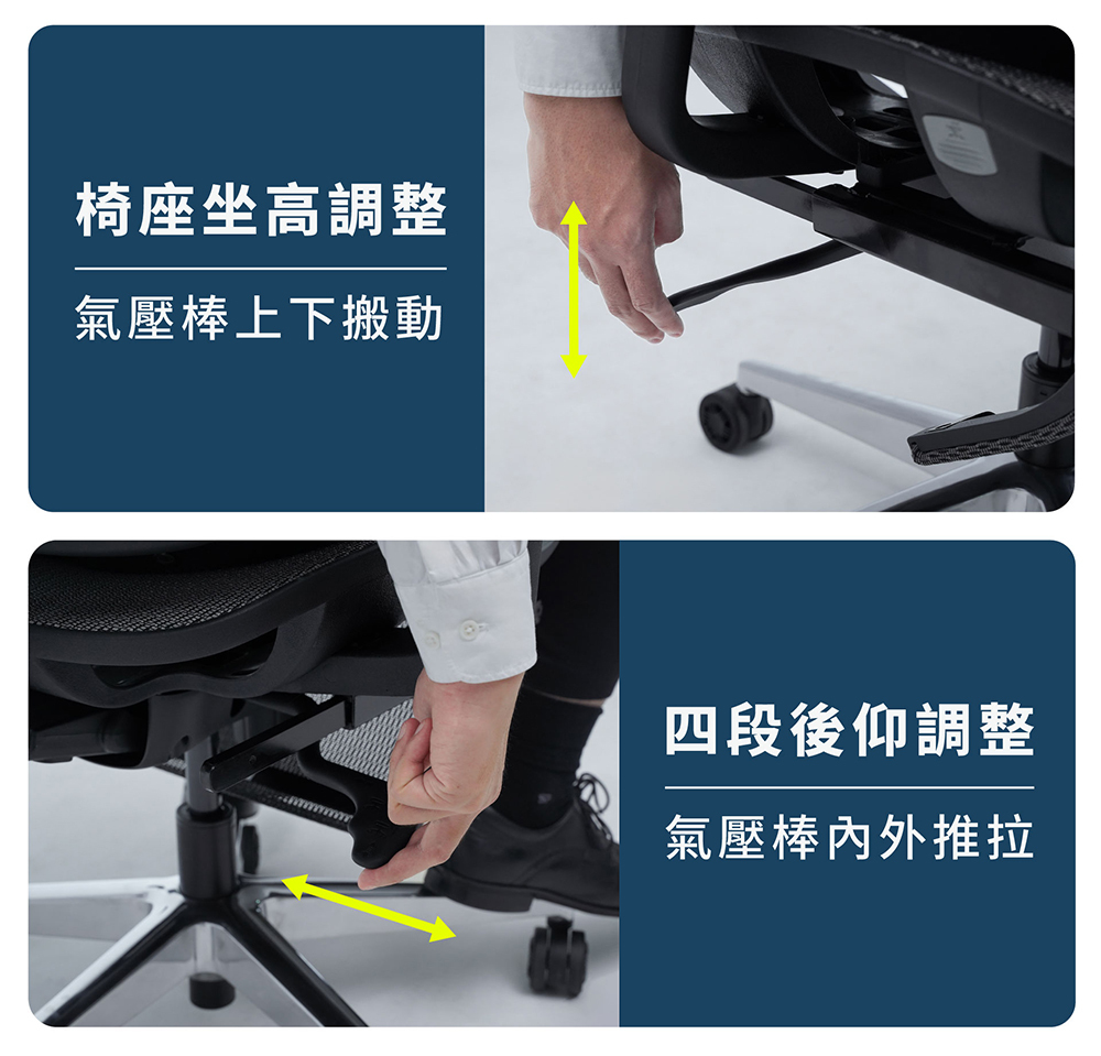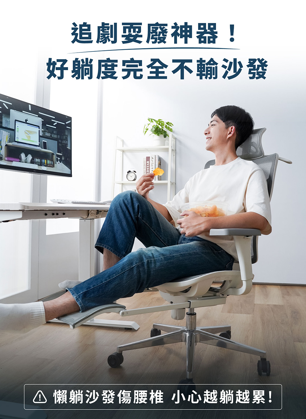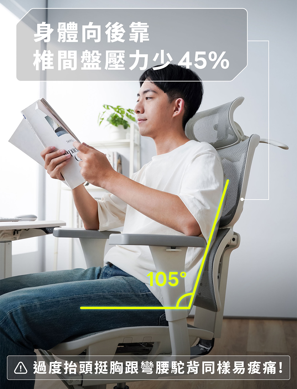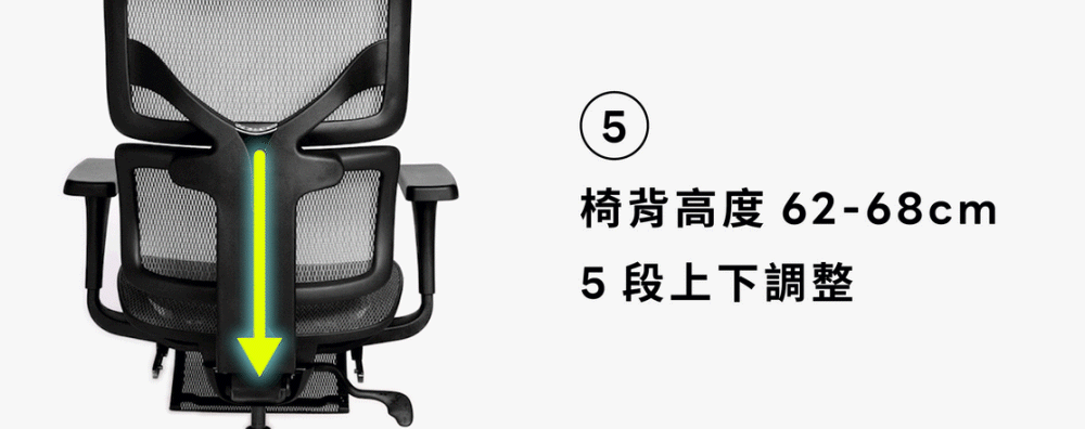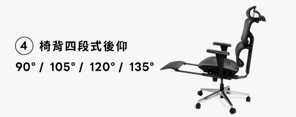 ✅ 椅背 5 段高低、4 段後仰鎖定、掛衣架