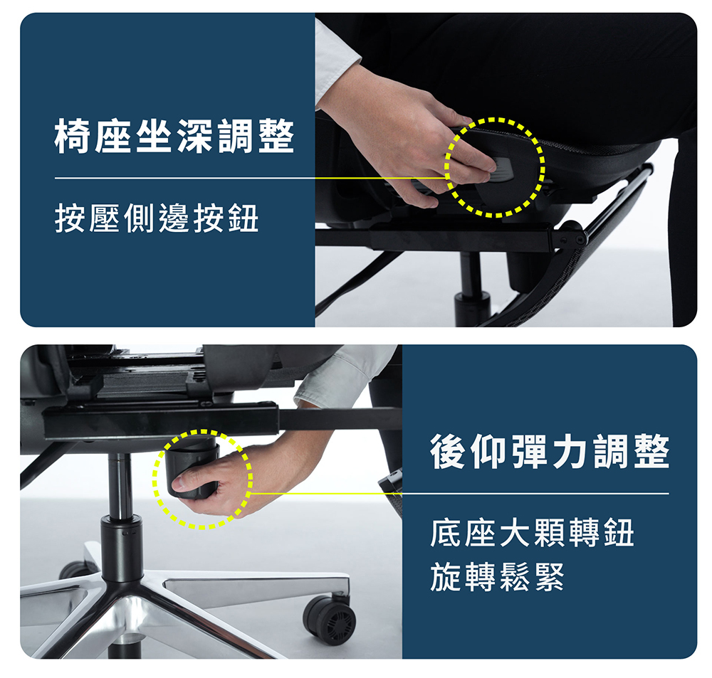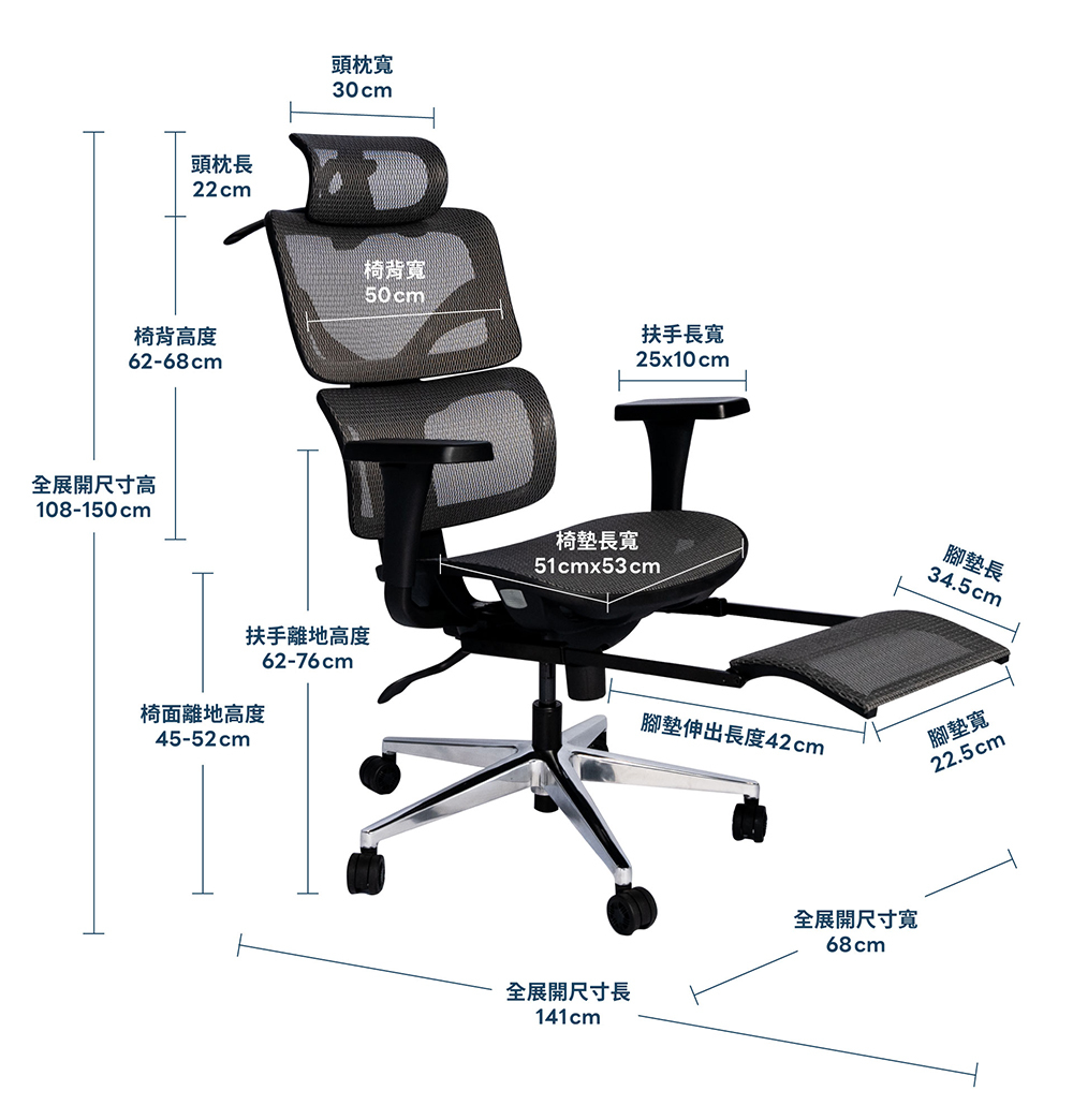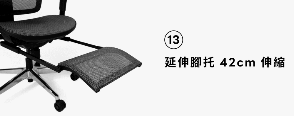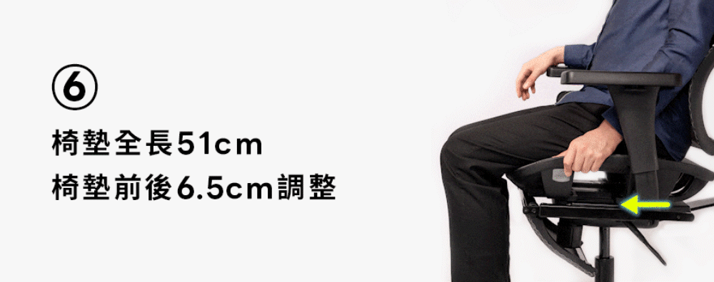 ✅ 坐墊 6.5cm 前後調整、42cm 延伸腳托