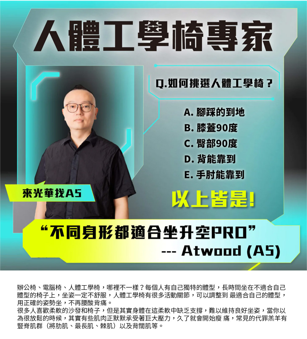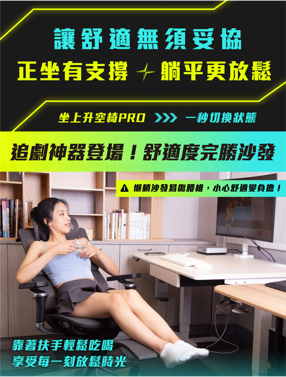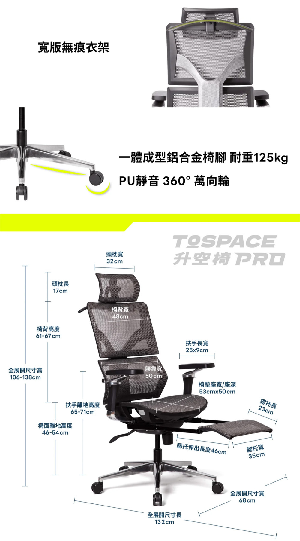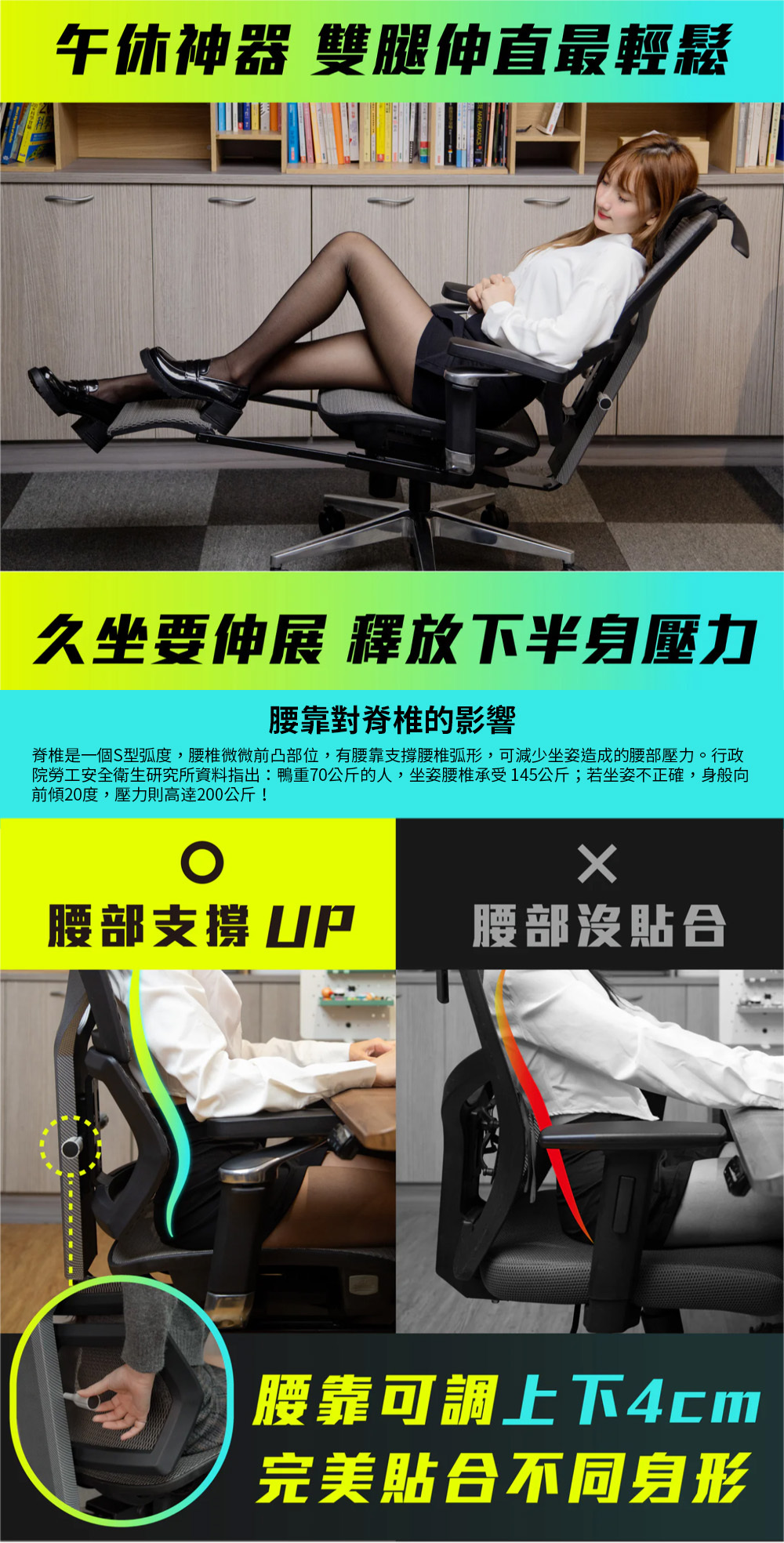 ✅ 椅背 5 段高低、4 段後仰鎖定、掛衣架