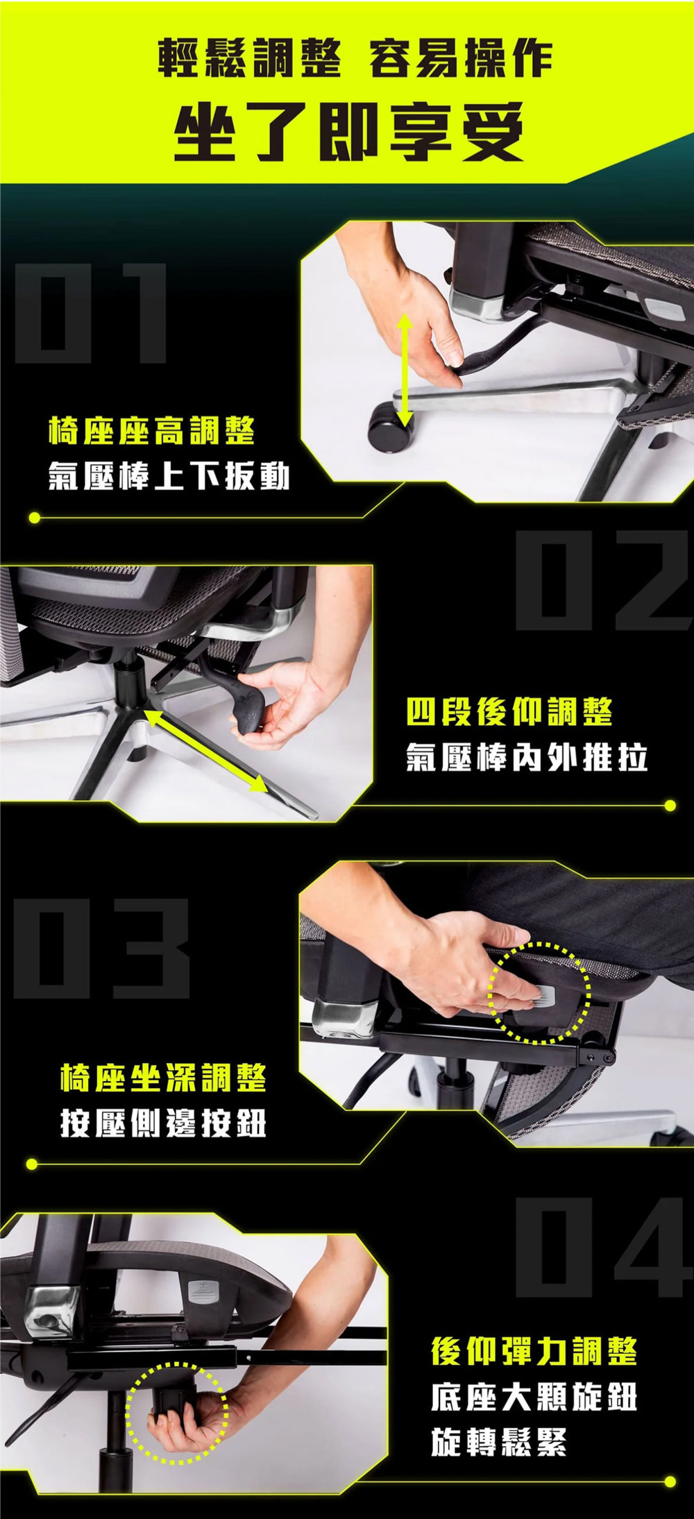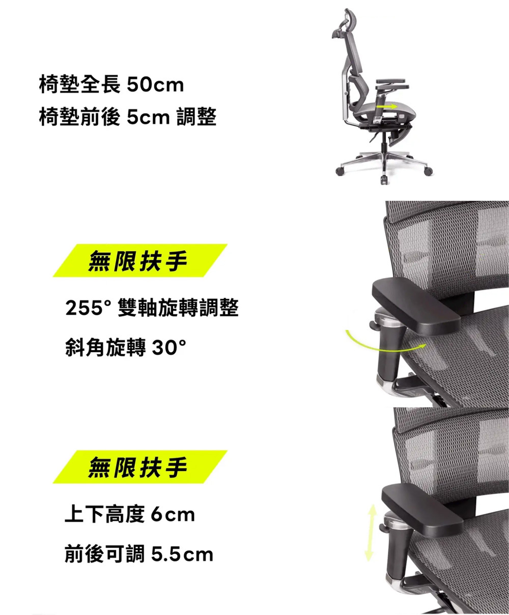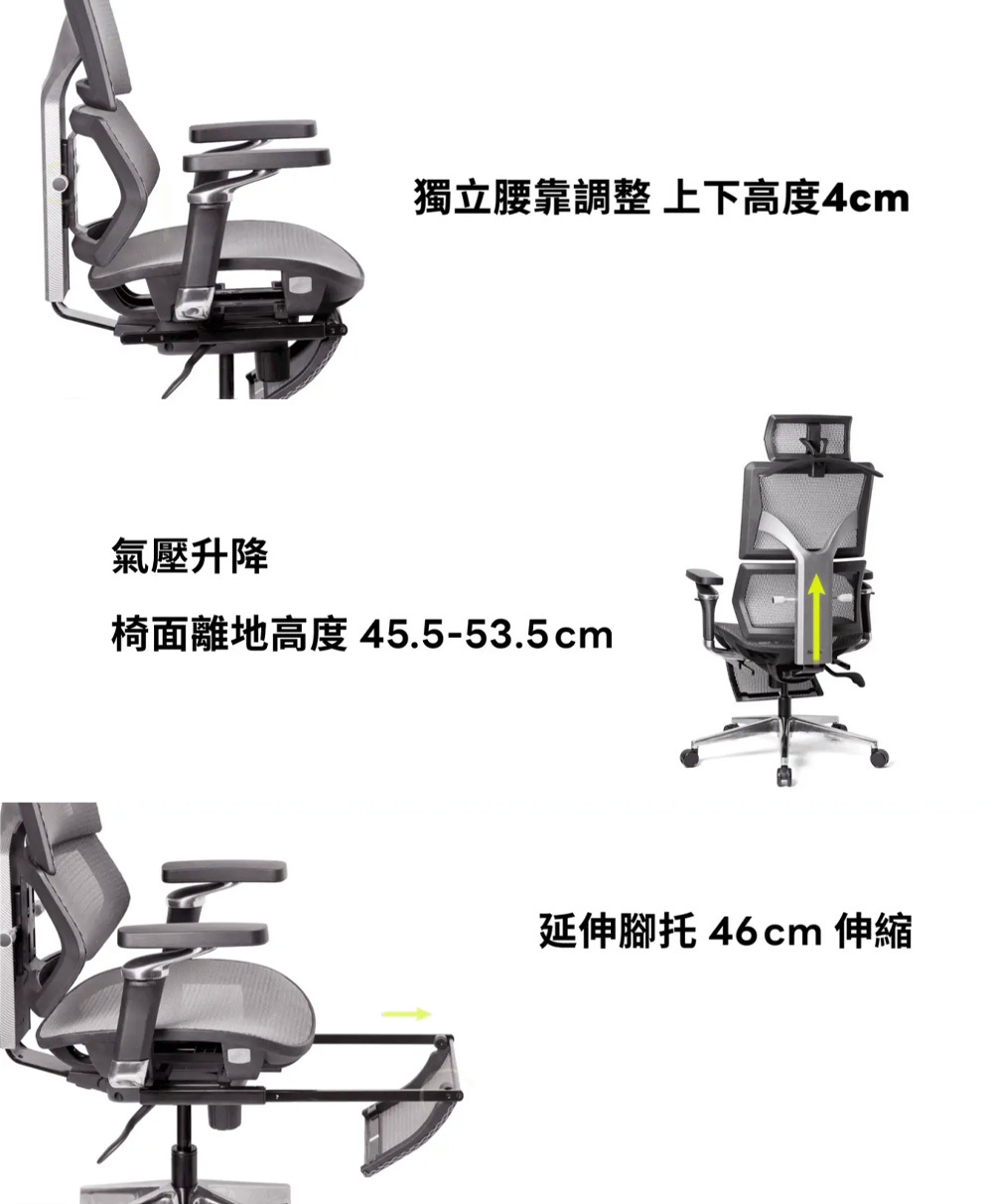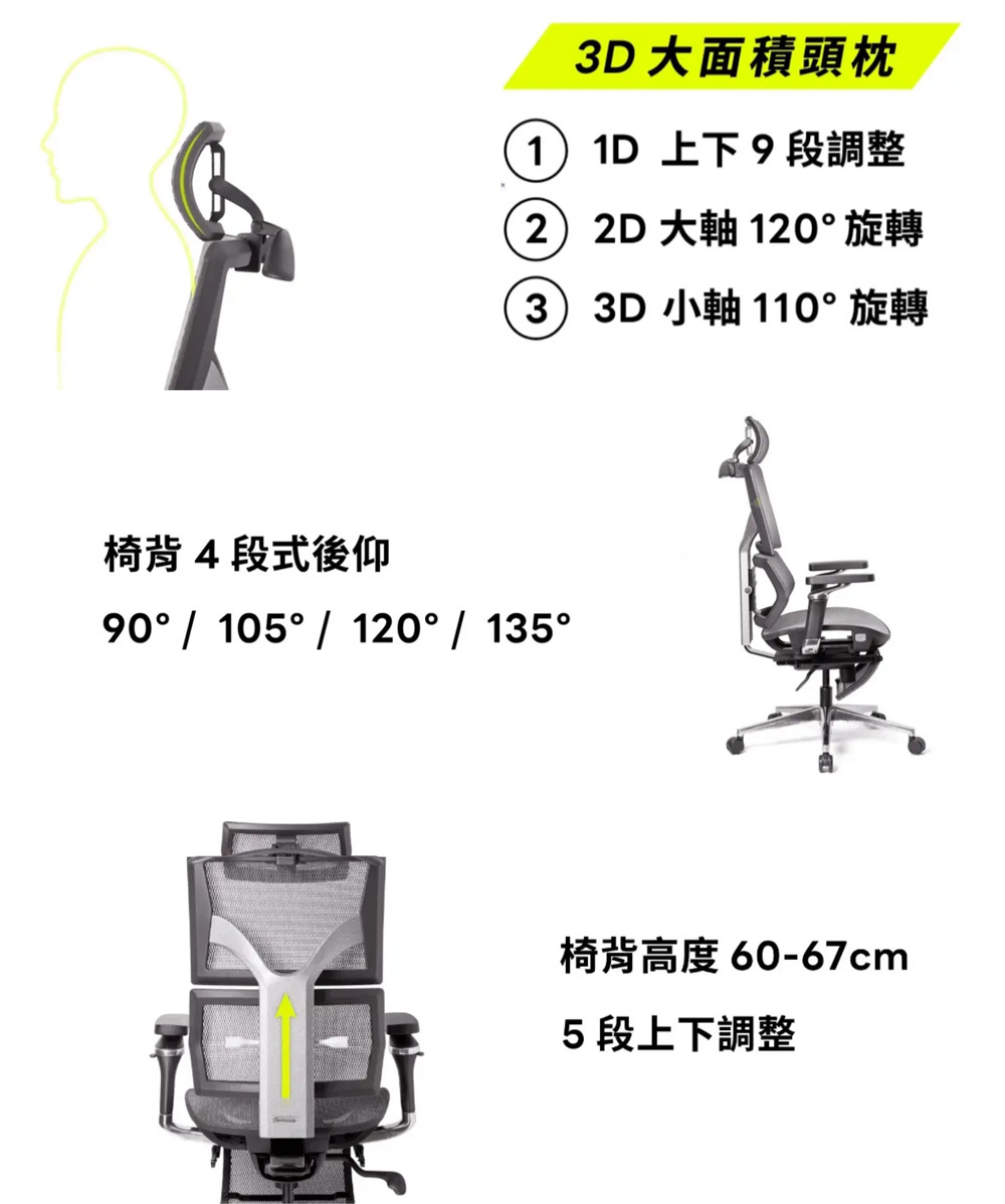 ✅ 3D 頭枕、4D 扶手、12 項可調細節