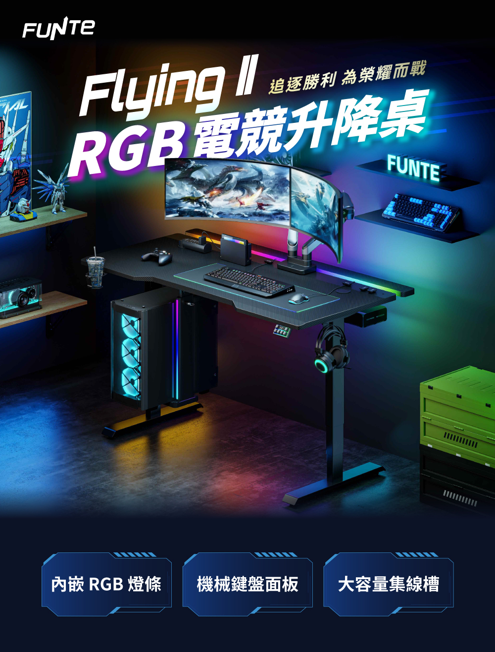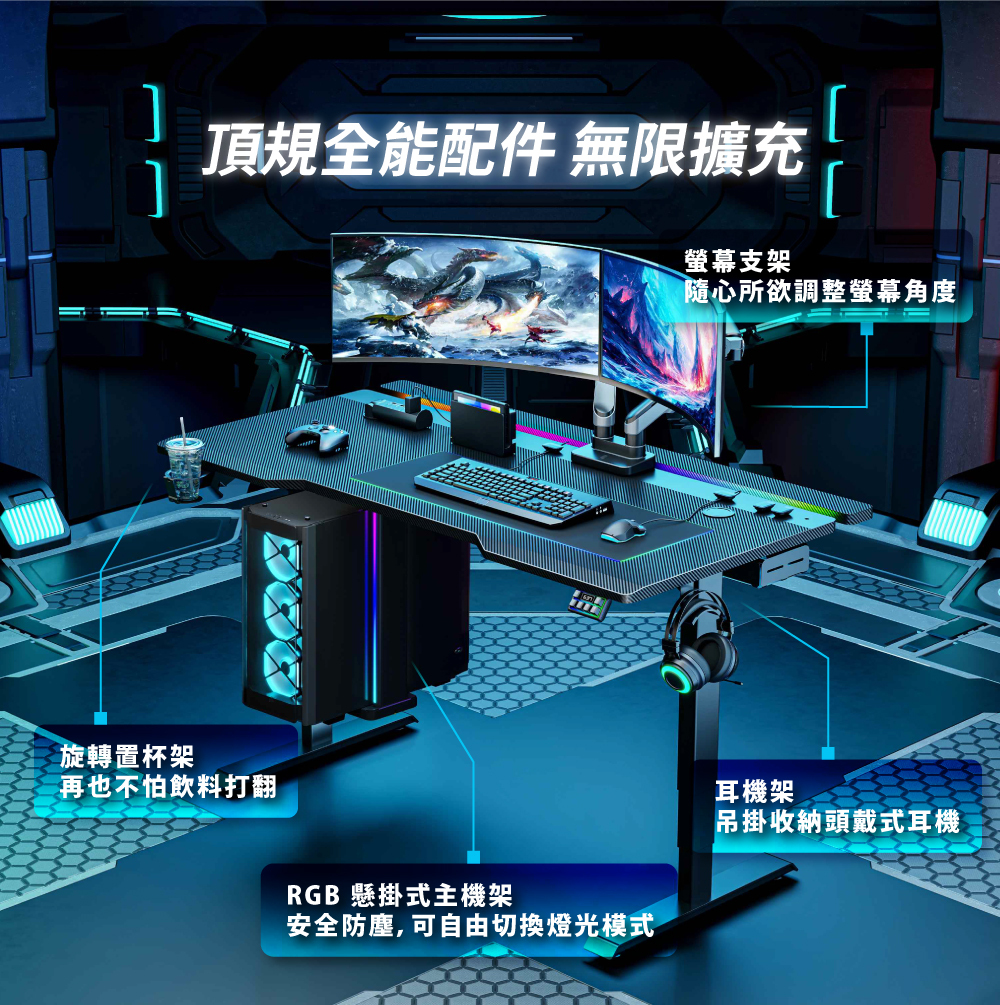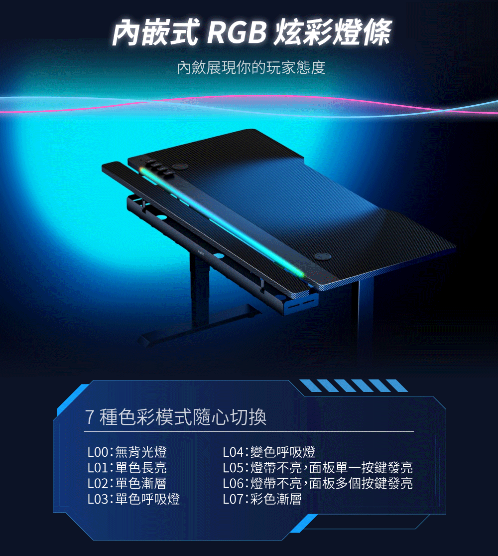 ✅ 內嵌 RGB 炫彩燈條,多種色彩模式可調整