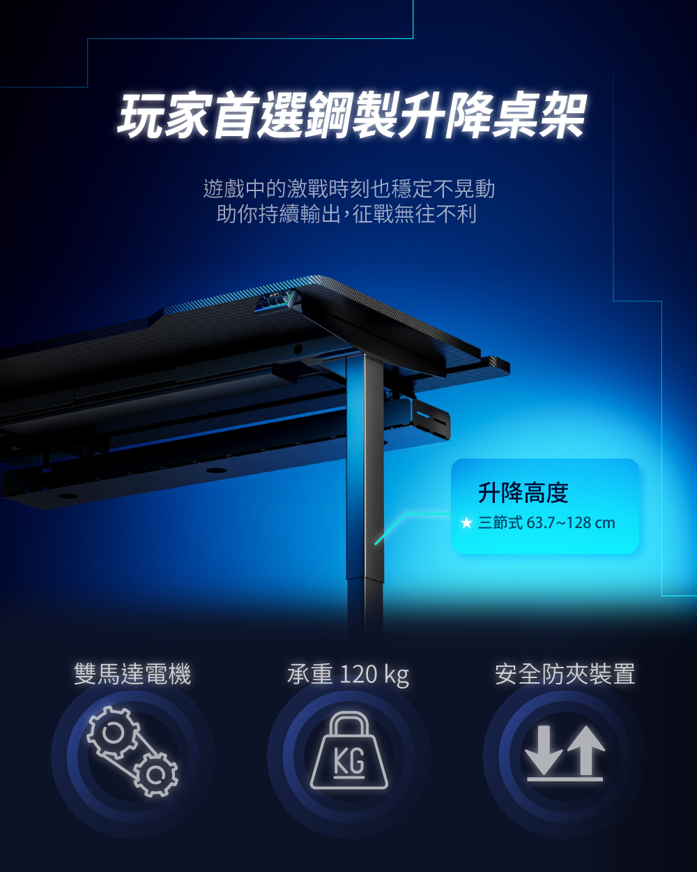 ✅ 固定尺寸:150x80cm|升降高度:63.7~128cm