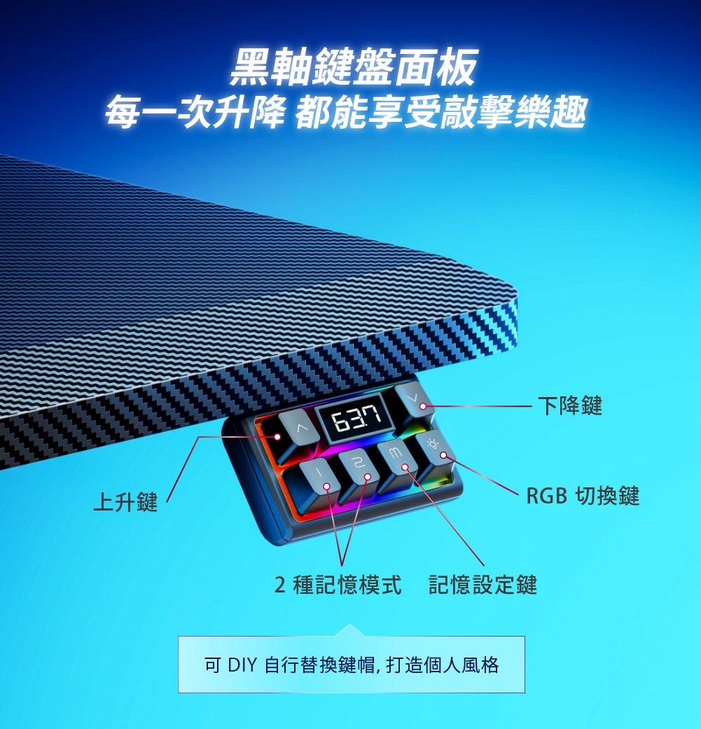✅ 黑軸機械鍵盤操控面板,可記憶 2 種高度