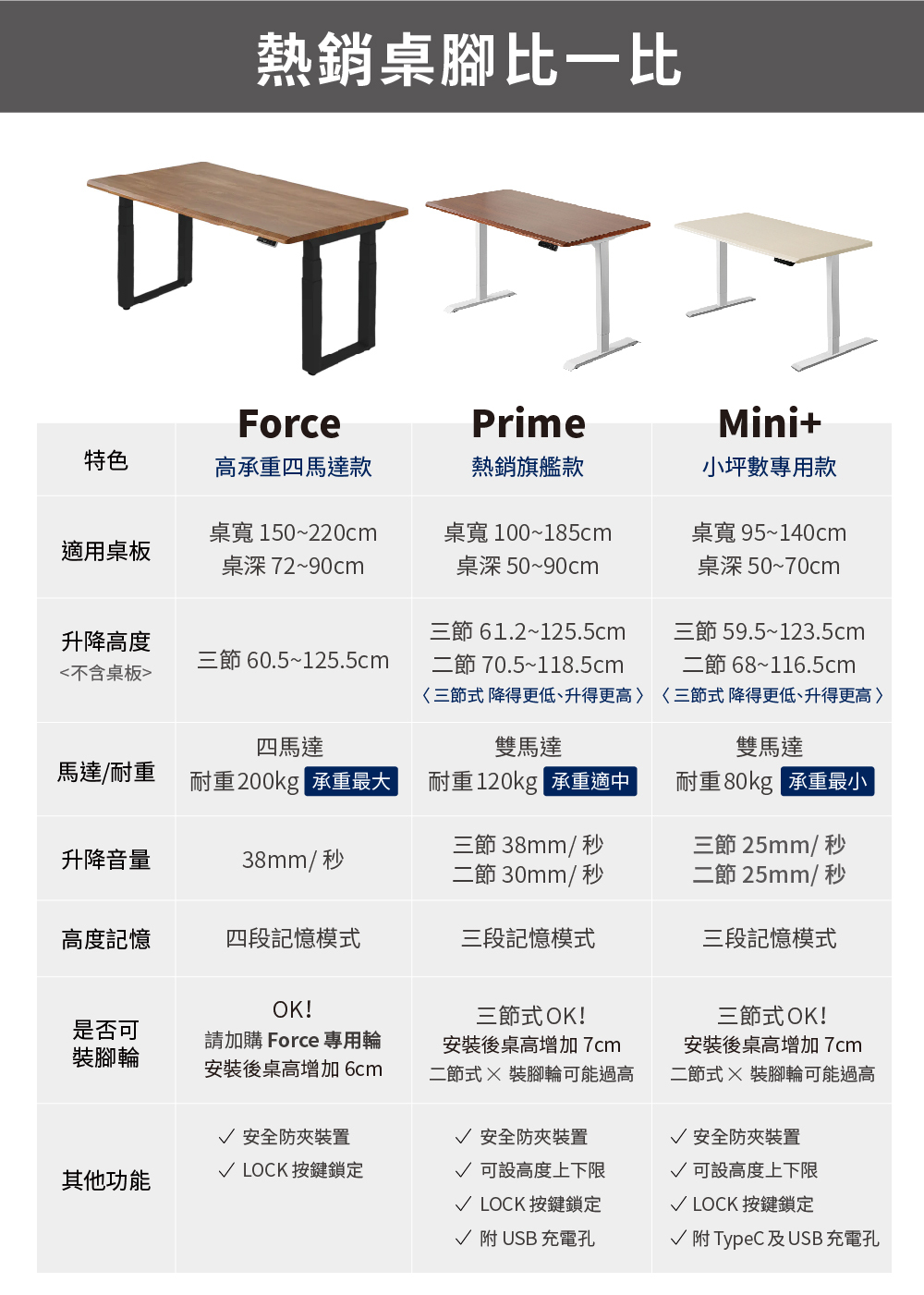 ✅ 升降範圍:60.5~125.5 cm(不含桌板)