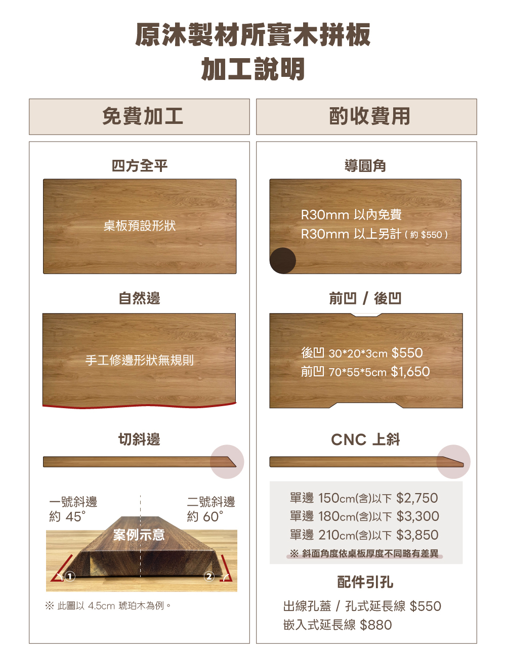🔺此款桌板形狀預設為四方全平,製程時間約 30~45 個工作天