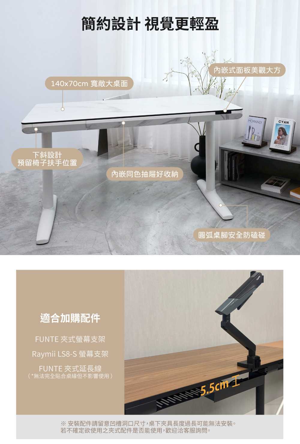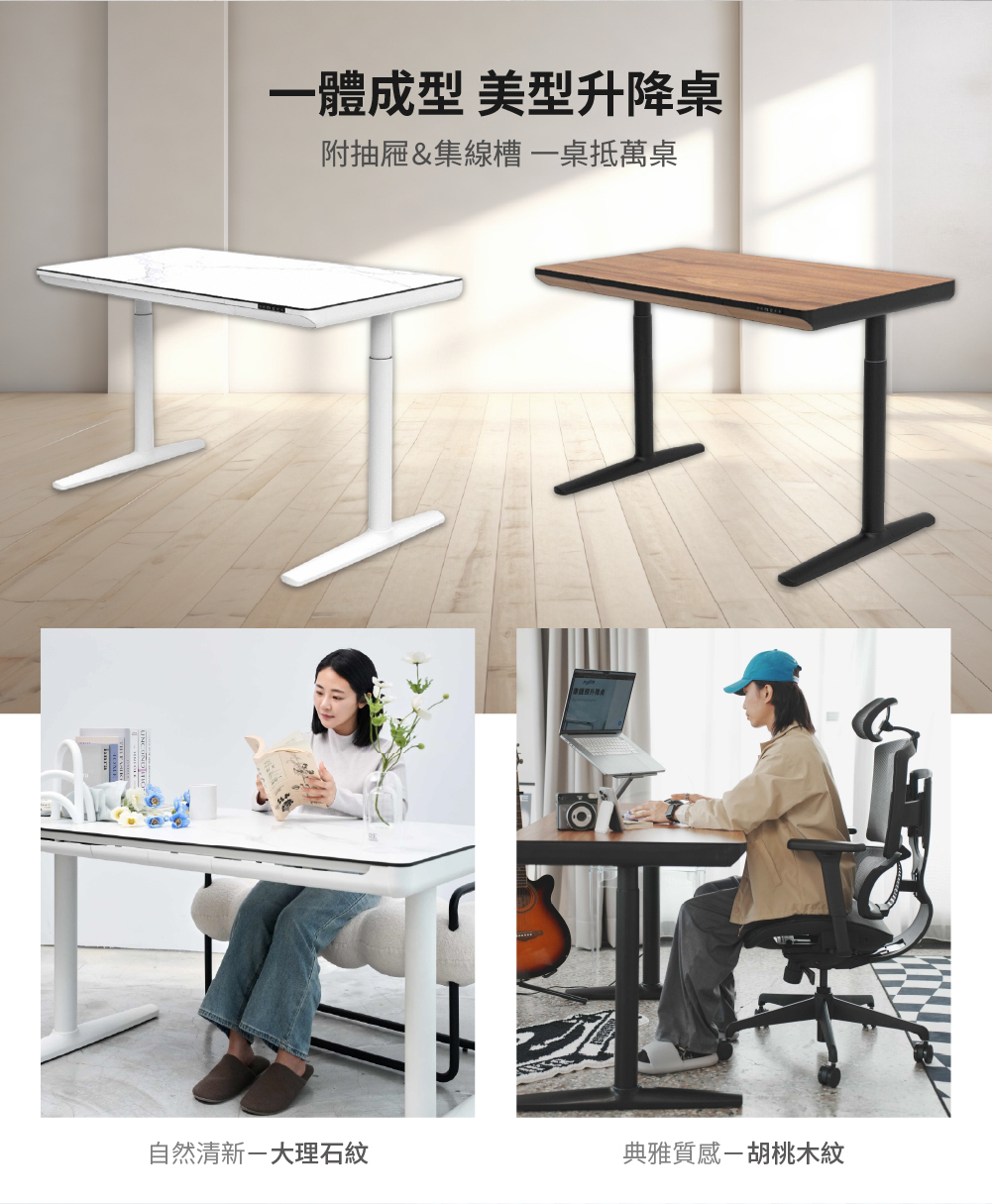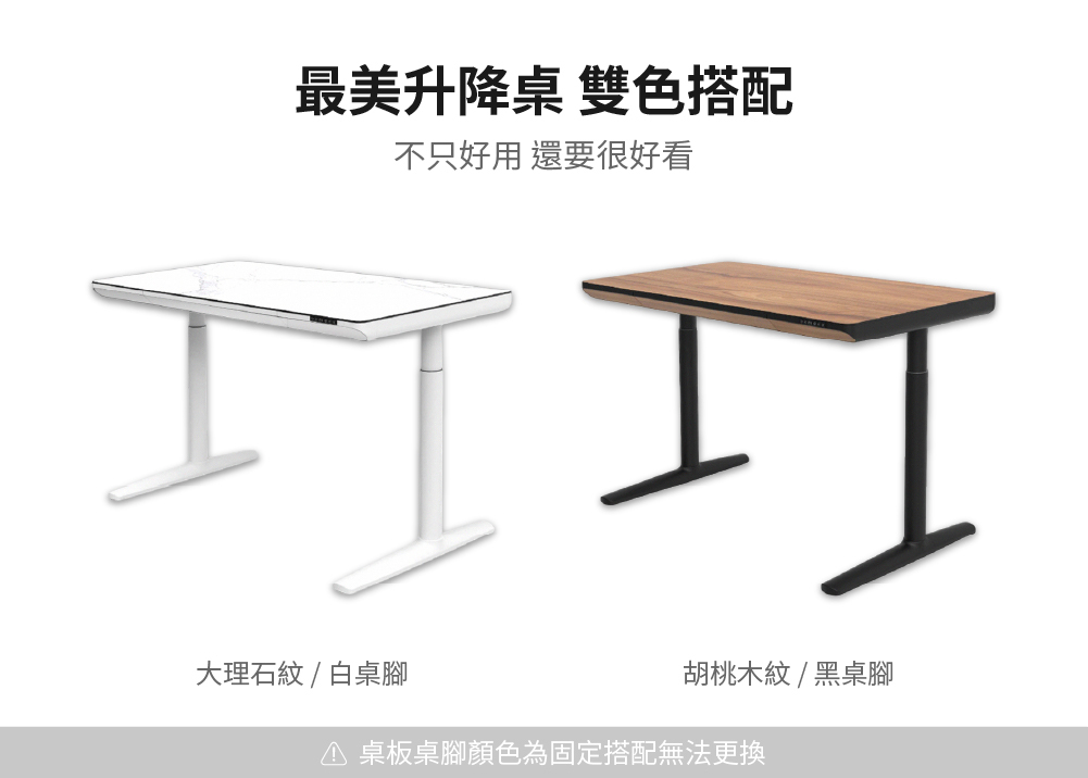 ✅ 最美升降桌雙色搭配:大理石白 / 胡桃木紋黑