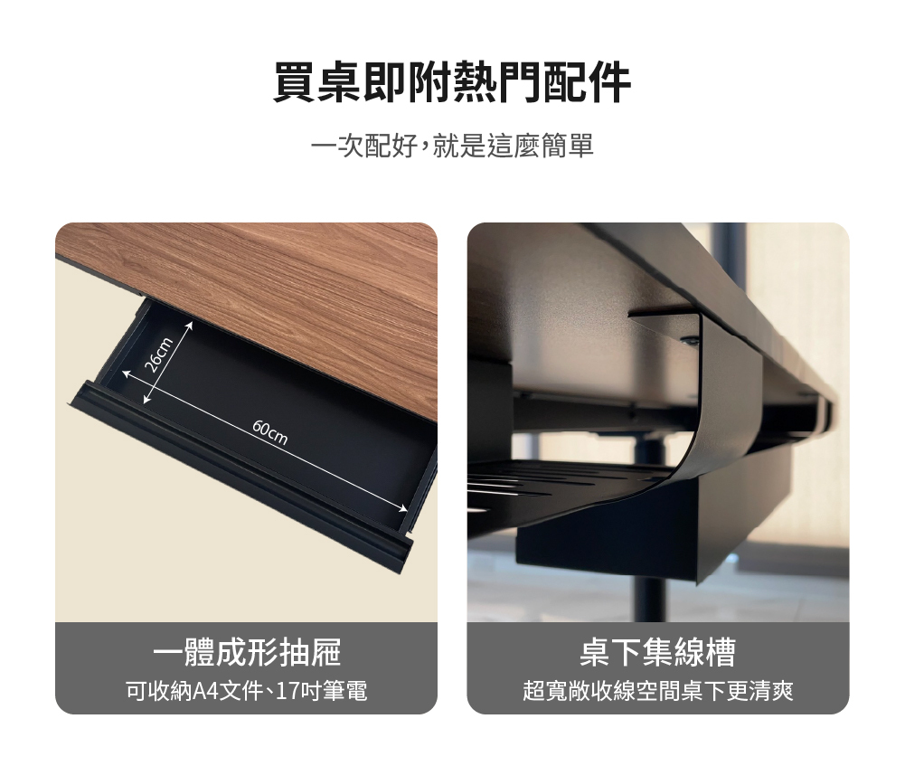 ✅ 買桌即附:抽屜、集線槽,給你超寬敞收納空間