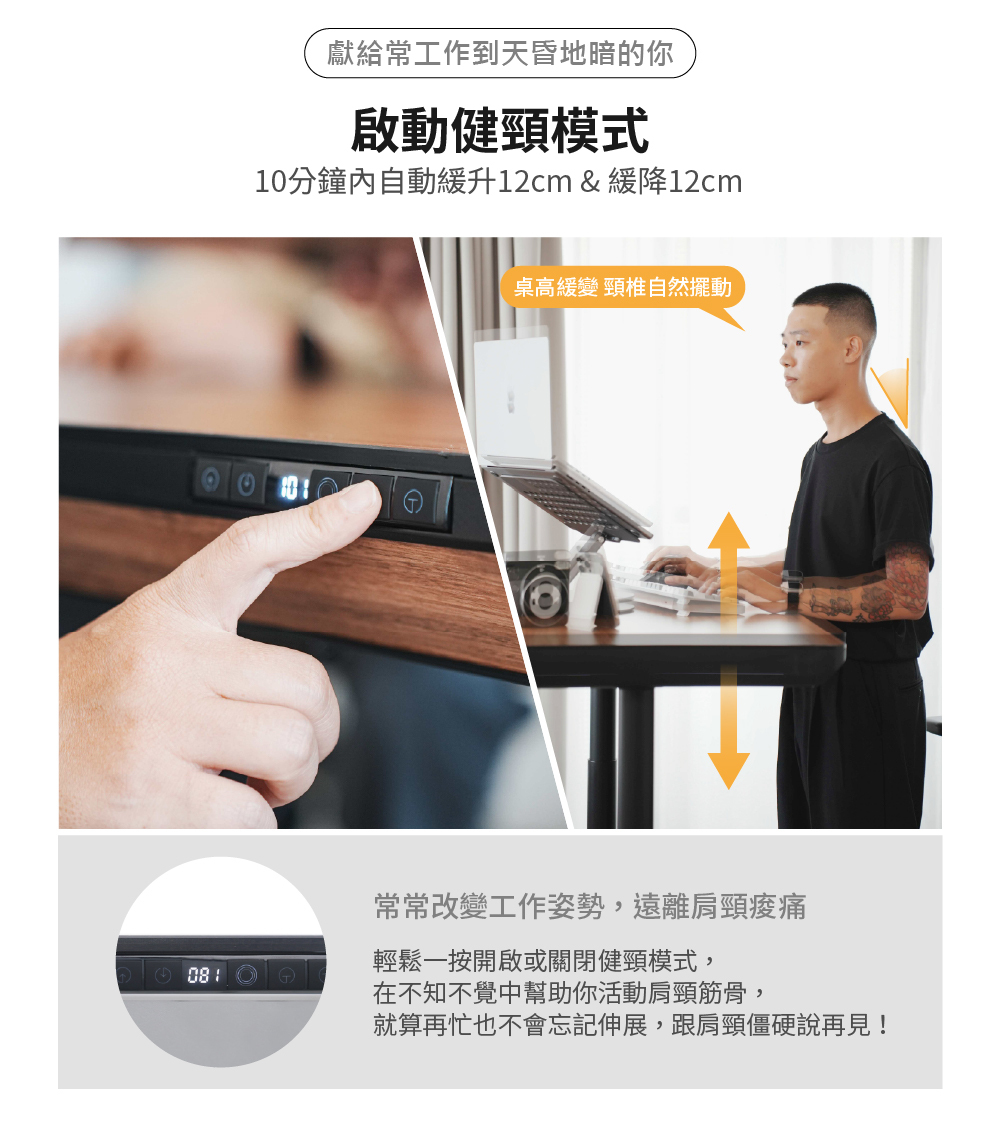 ✅ 健頸模式自動緩升緩降,默默幫你改變姿勢