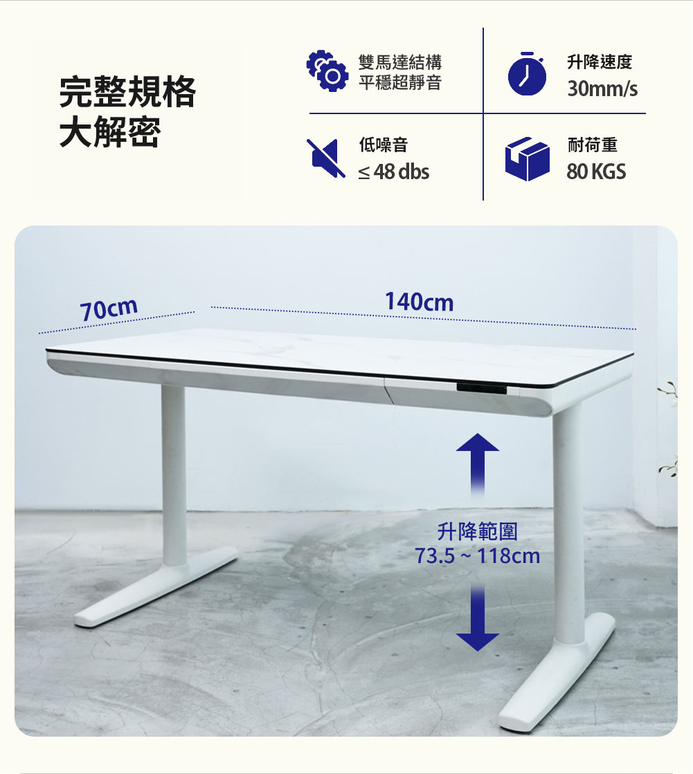 ✅ 兩種記憶模式一鍵升降,升降範圍 73.5~118cm