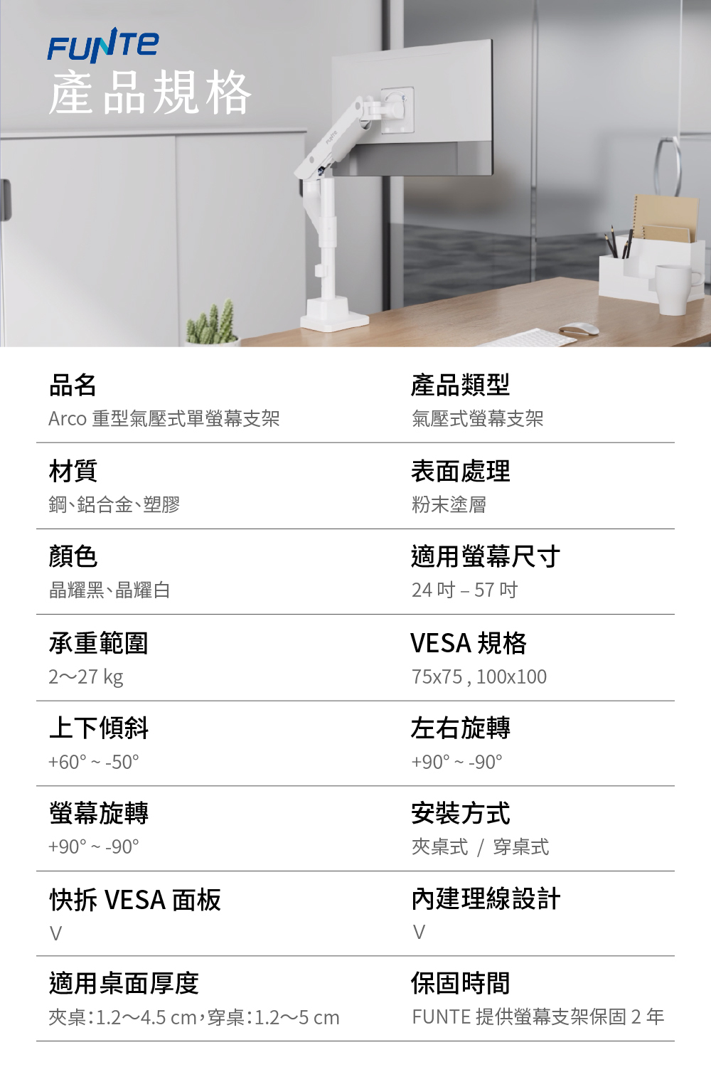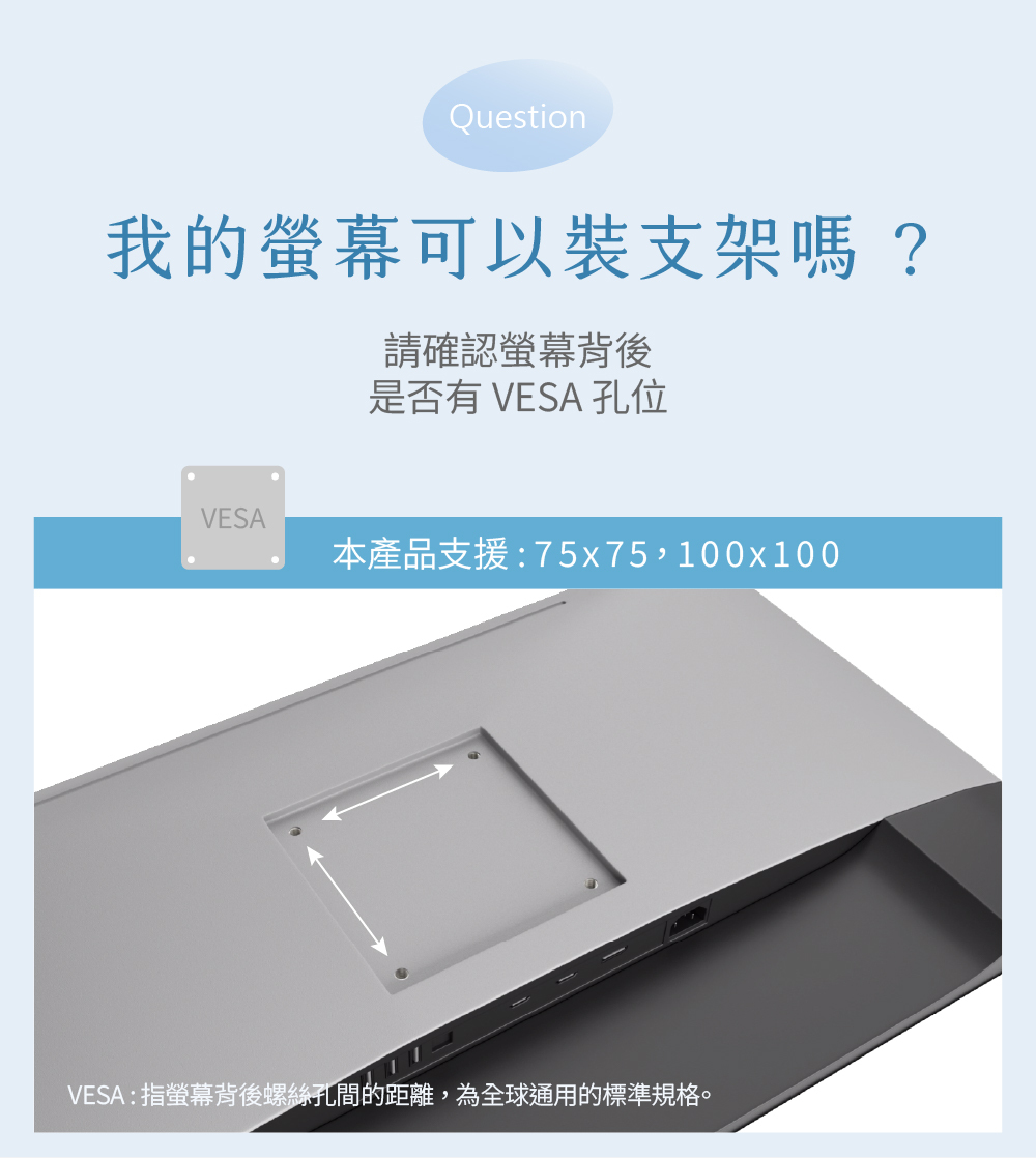 * 適用 VESA 75x75 / 100x100,購買前請先確認螢幕 VESA 孔位