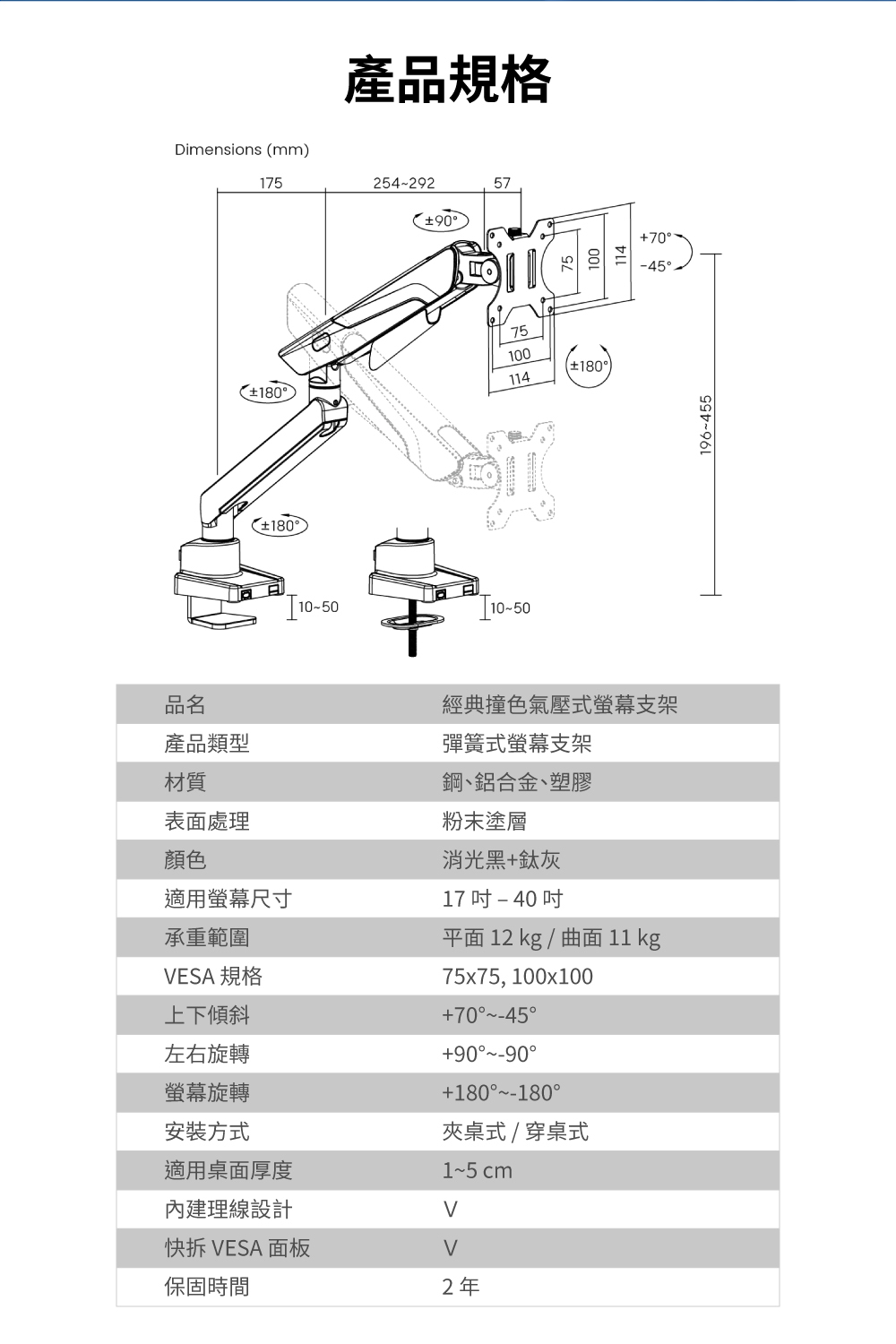 ✅ 支援 17~40 吋平曲面螢幕,耐重 11 kg