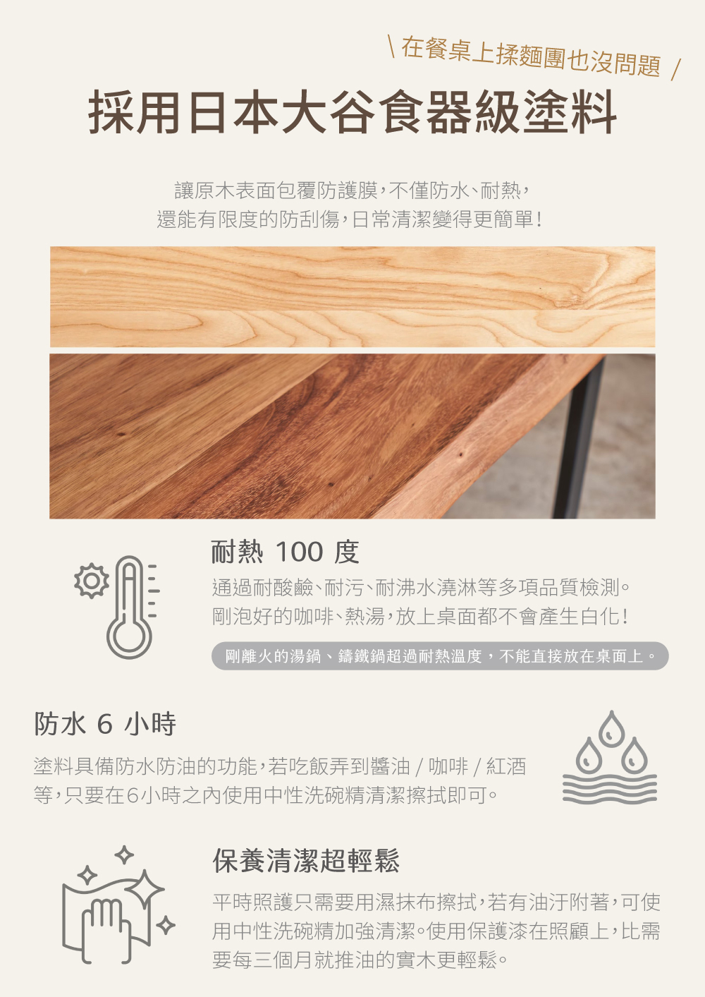 ✅ 桌板使用日本大谷環保塗料,無需推油保養