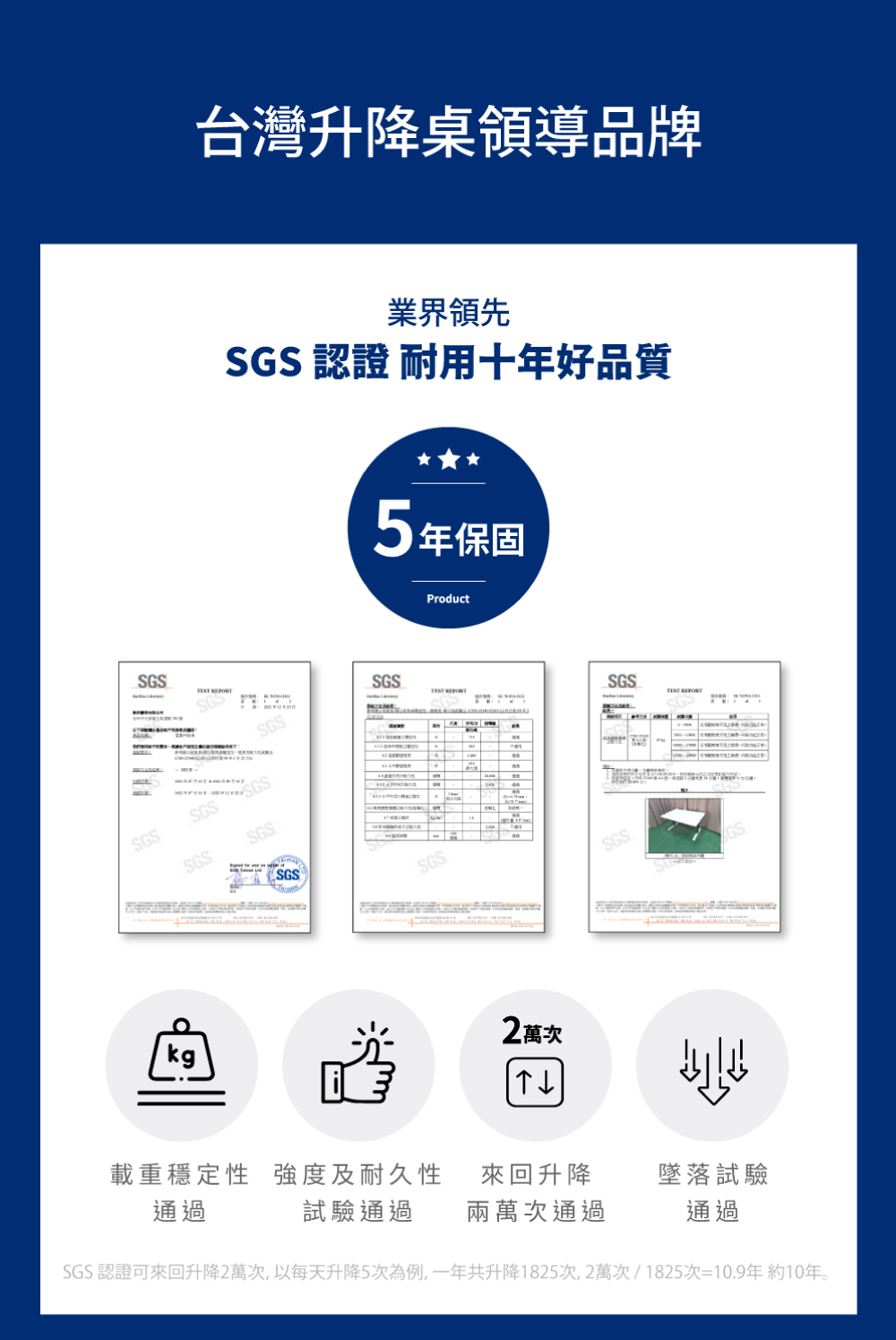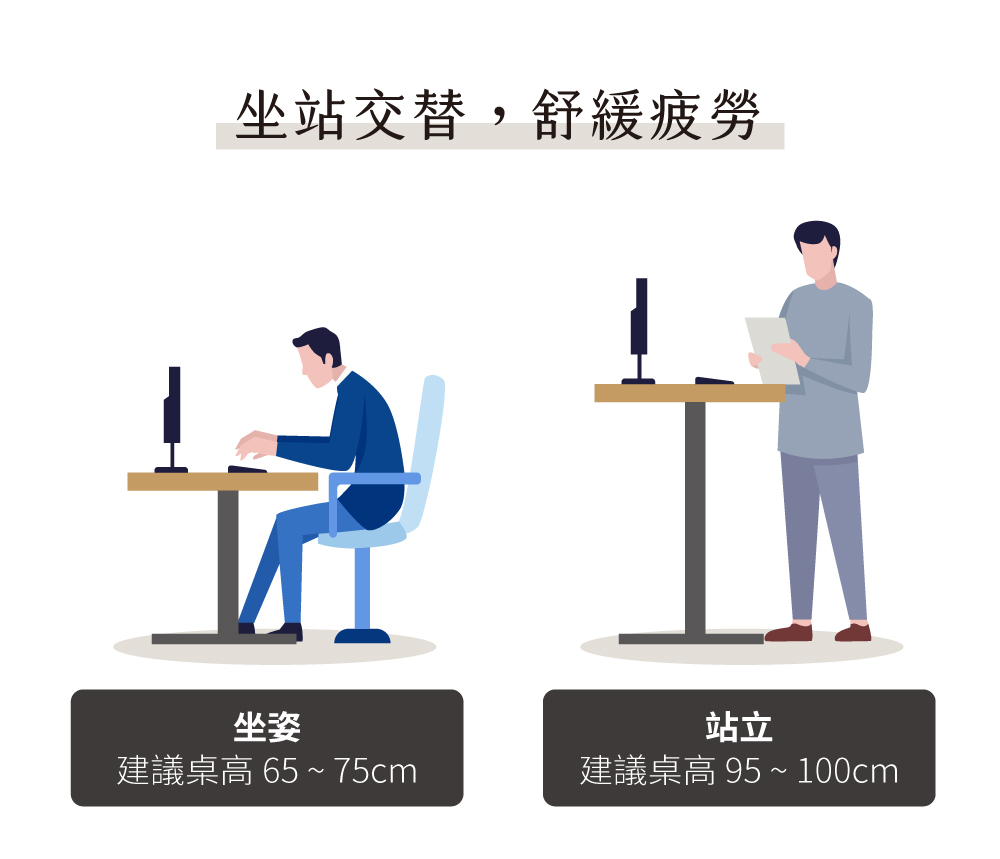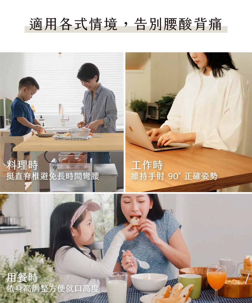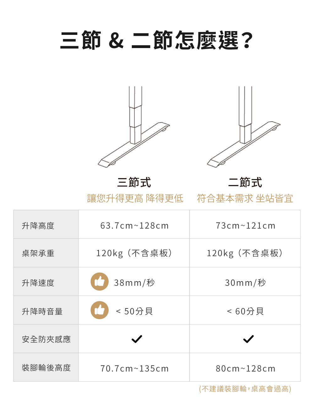 ✅ 二節式升降高度 70.5-118.5 cm(不含桌板)
