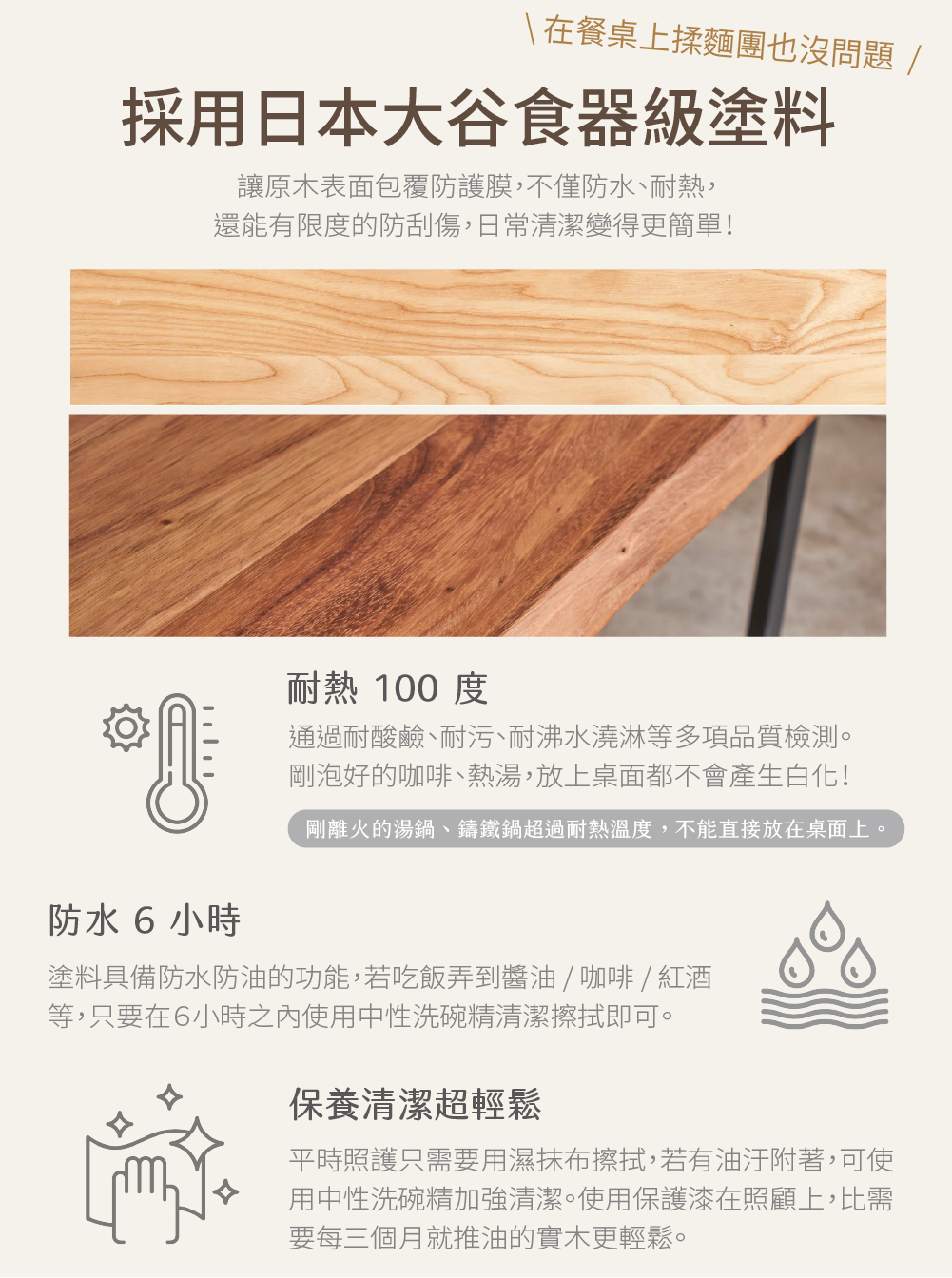 ✅ 桌板使用日本大谷環保塗料,無需推油保養