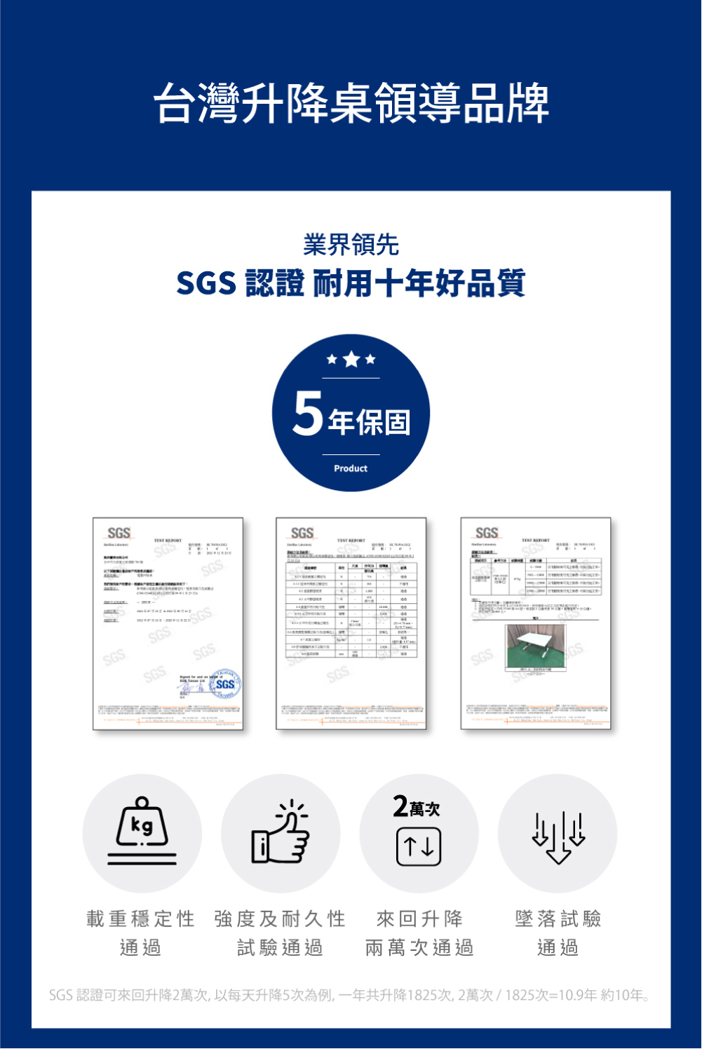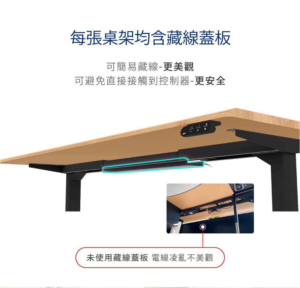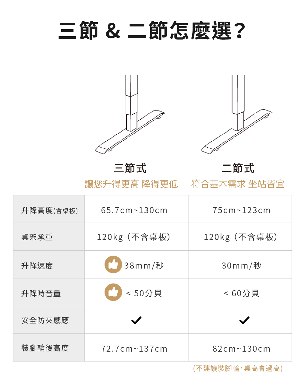 ✅ 二節式升降高度 70.5-118.5 cm(不含桌板)