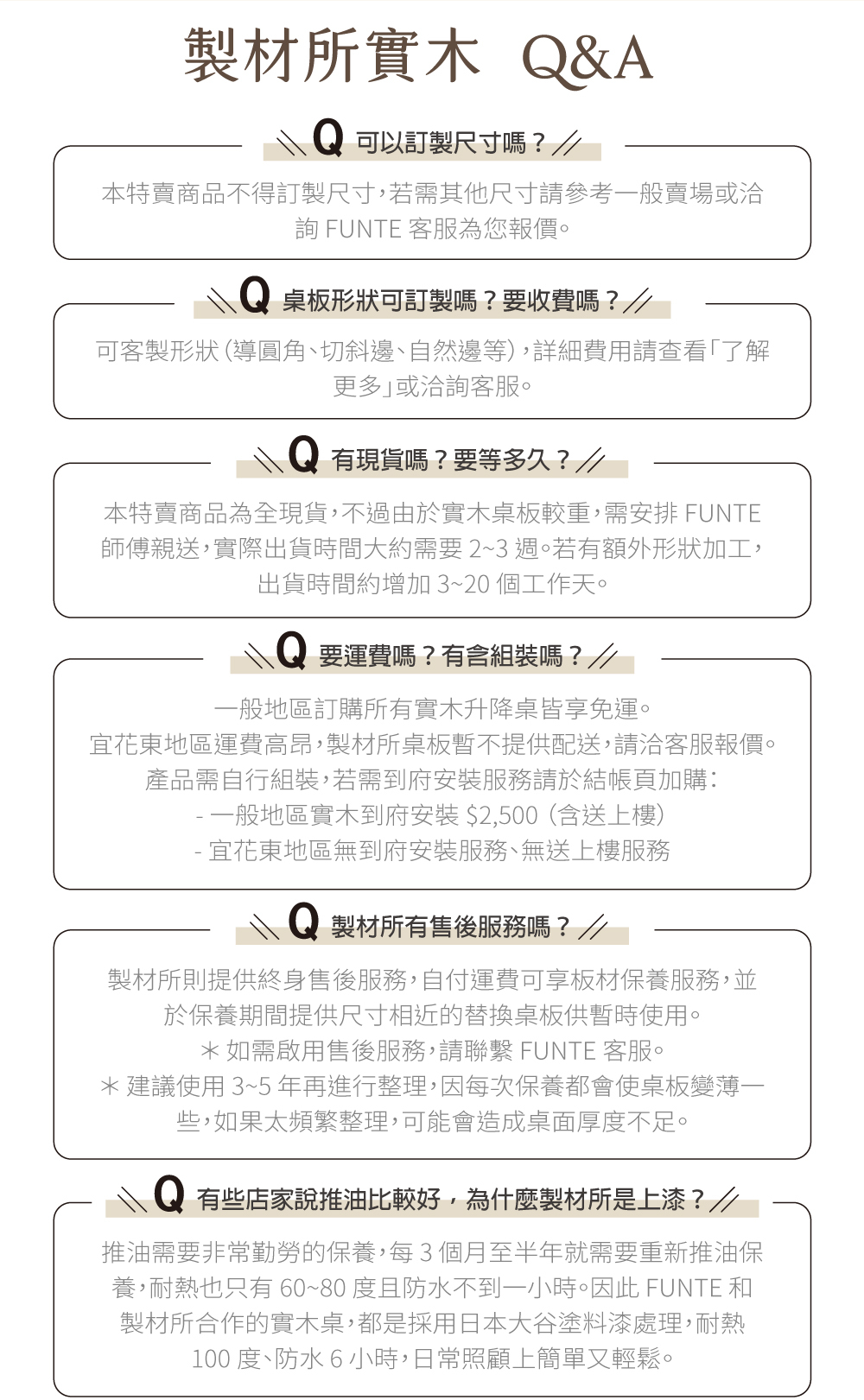 🔺桌板形狀預設為四方全平,下單後最快 2 週可出貨,若需加工出貨天另計